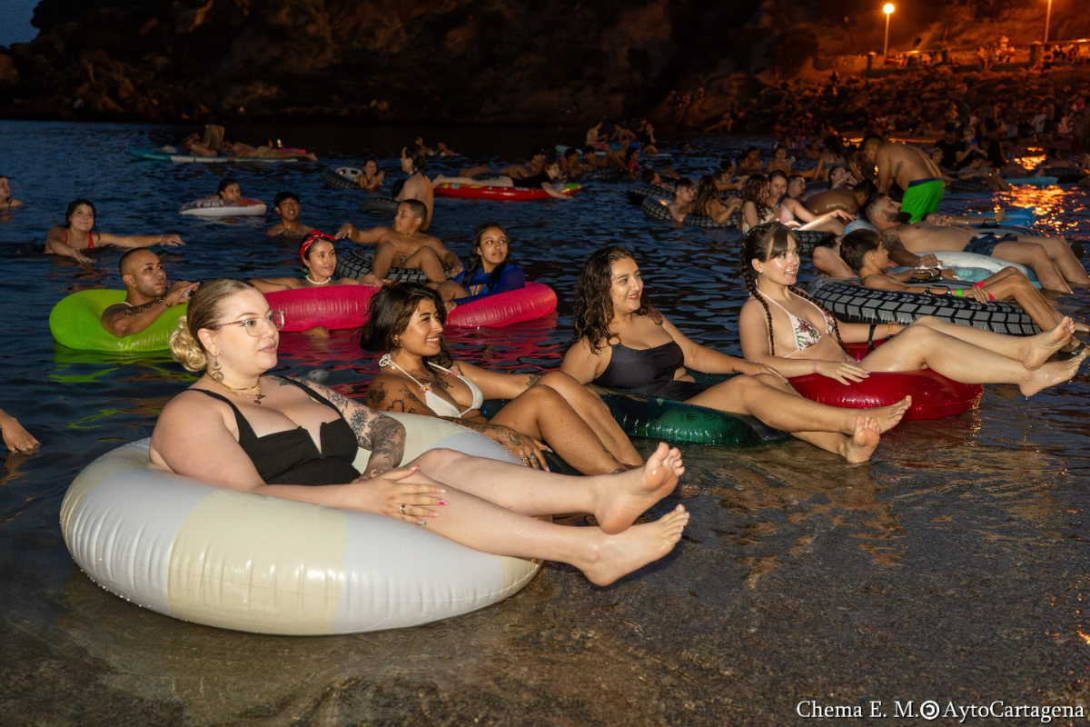 Los asistentes pudieron disfrutar de la película subidos en flotadores o desde la arena de la playa