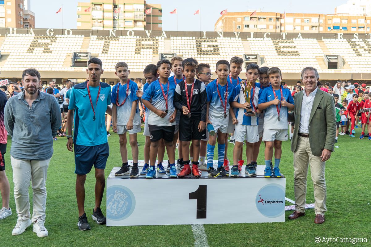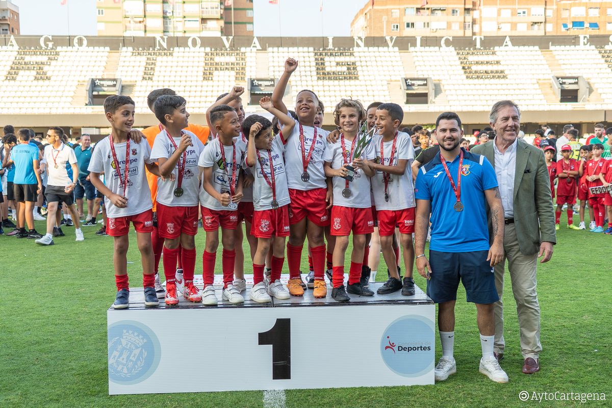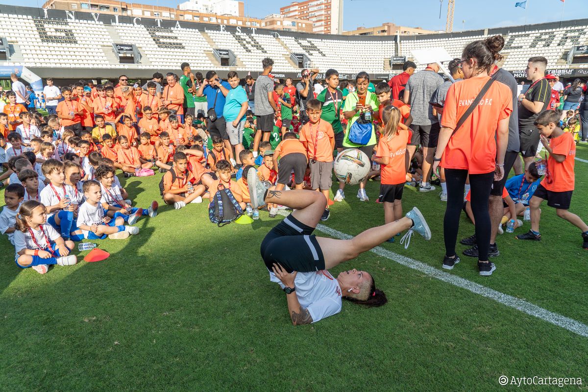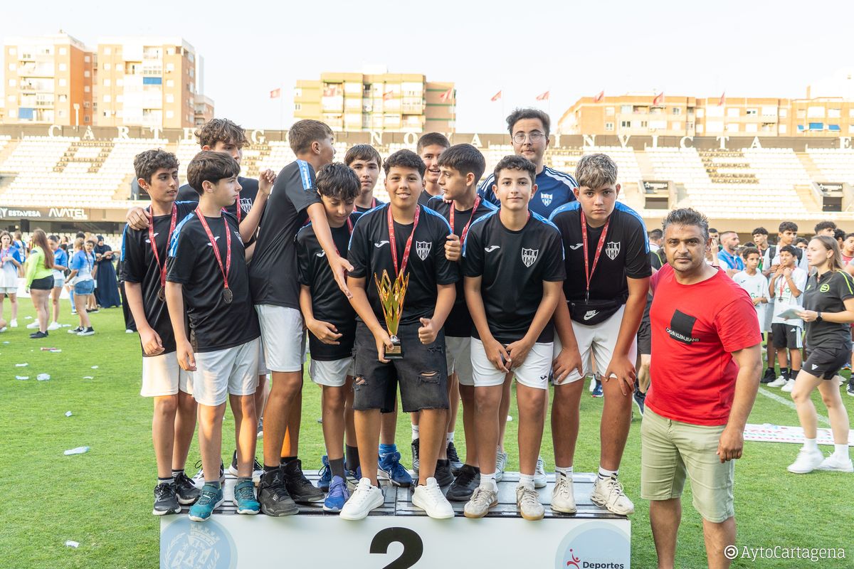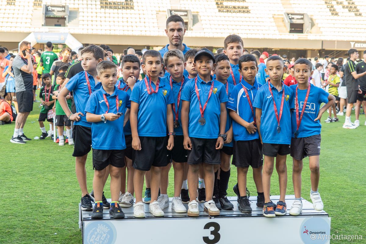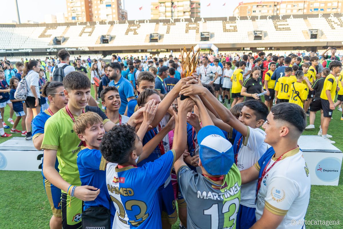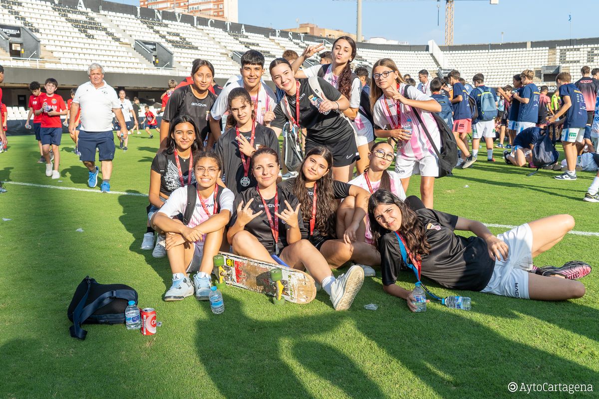 Cientos de chavales participaron en el acto celebrado este jueves en el Estadio Municipal Cartagonova, que incluyó desfiles y exhibiciones, culminando con la entrega de trofeos