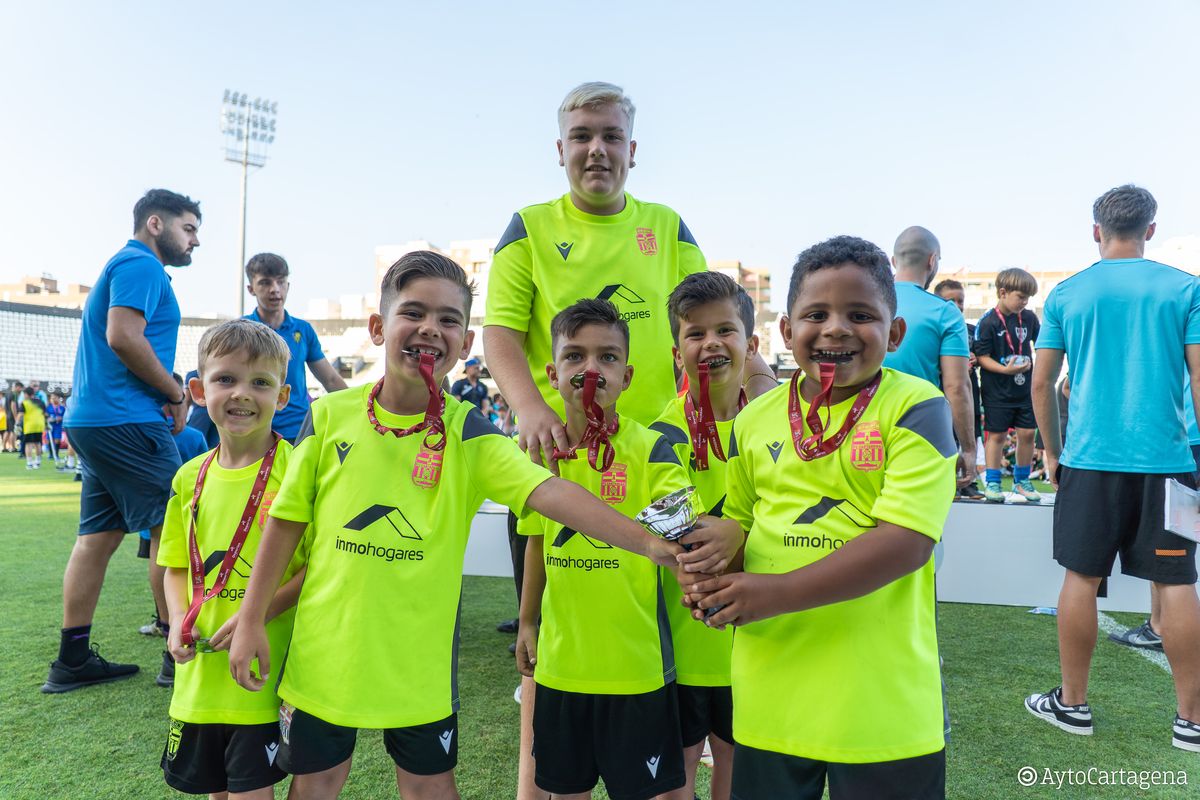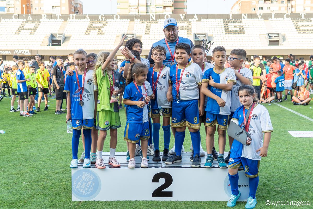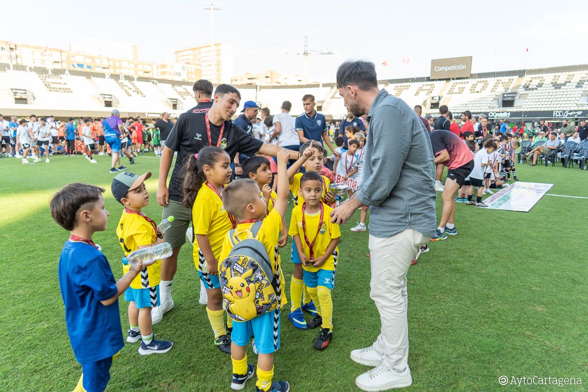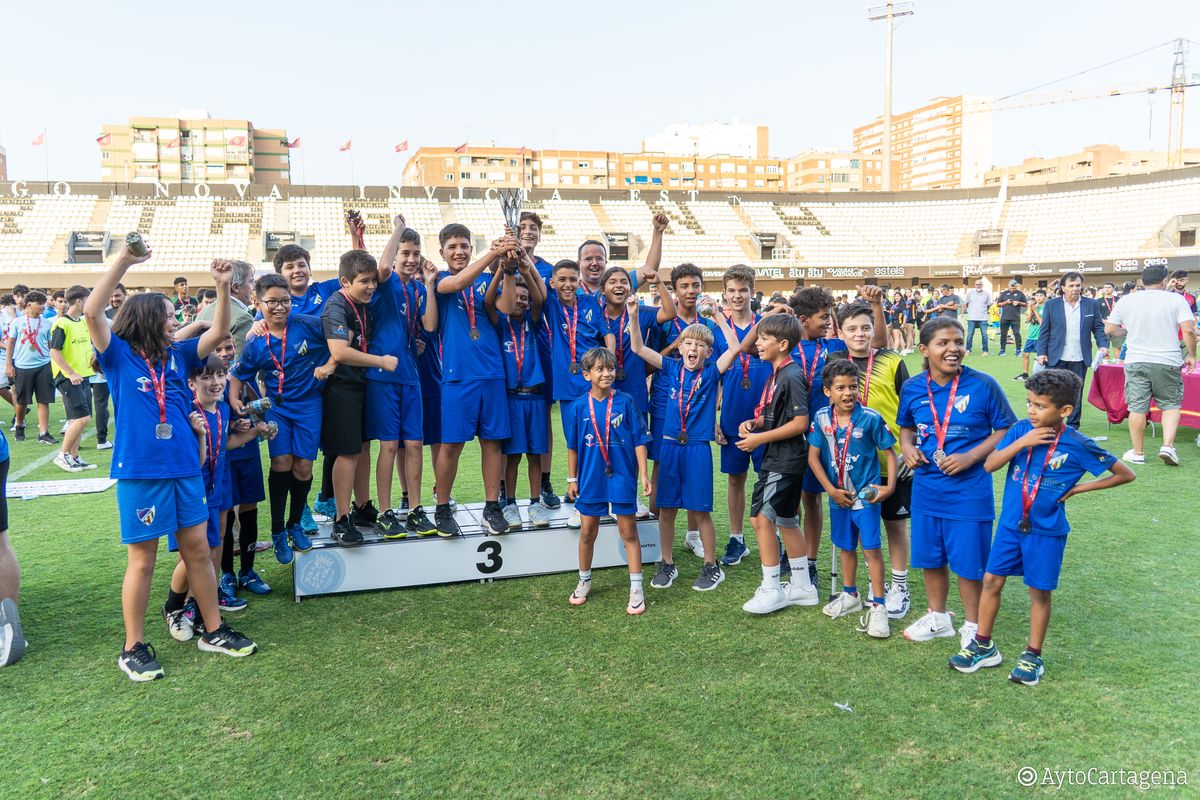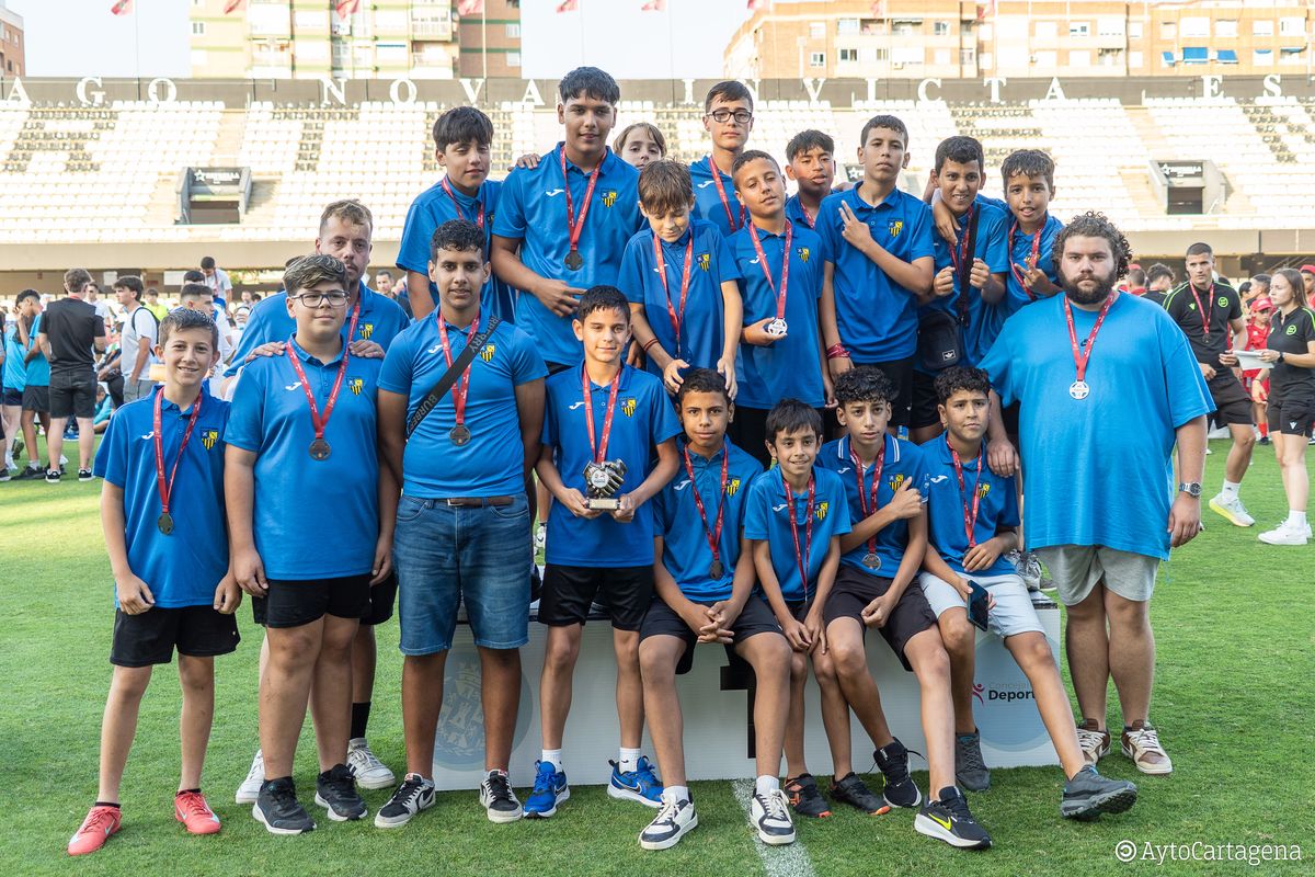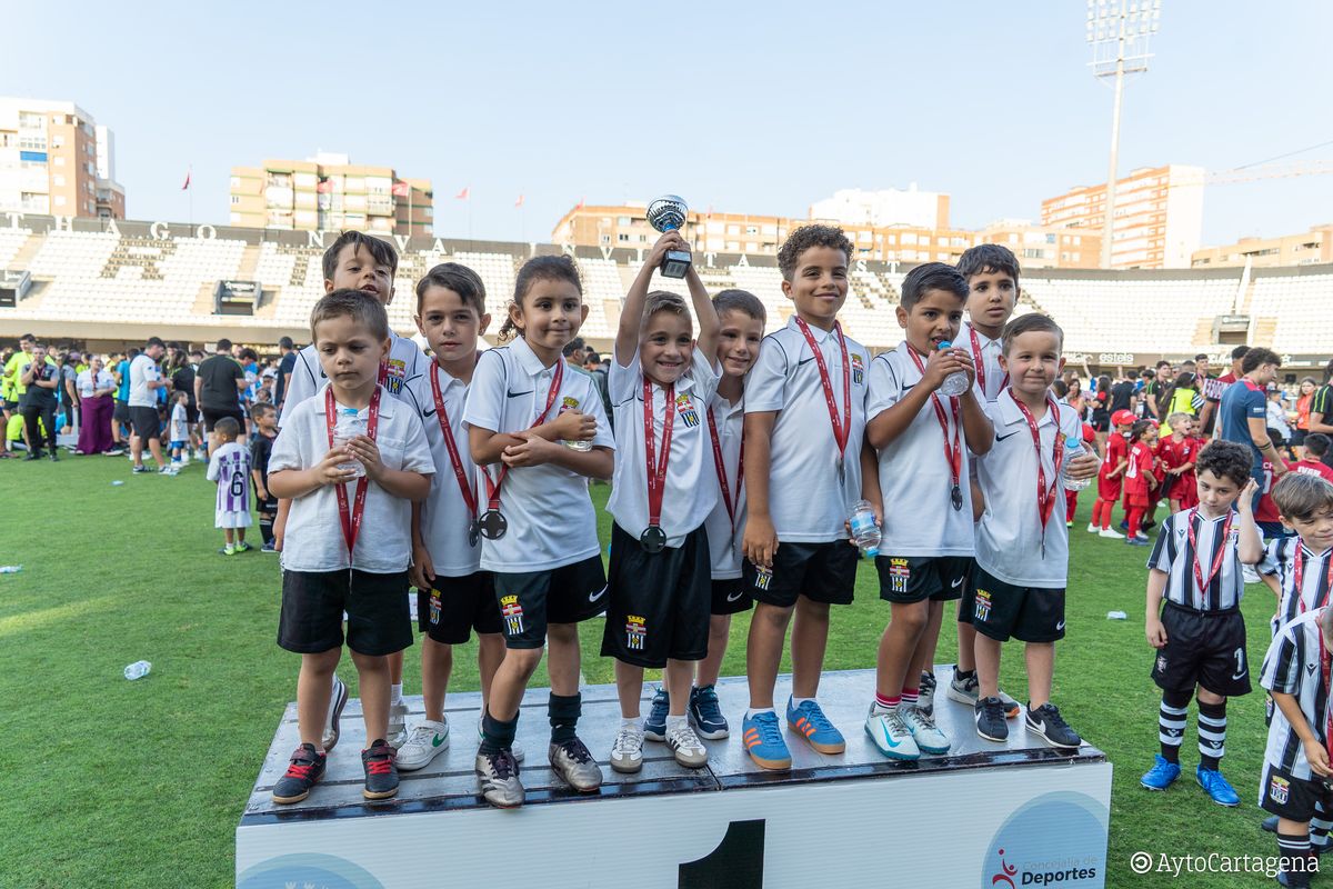 Cientos de chavales participaron en el acto celebrado este jueves en el Estadio Municipal Cartagonova, que incluyó desfiles y exhibiciones, culminando con la entrega de trofeos
