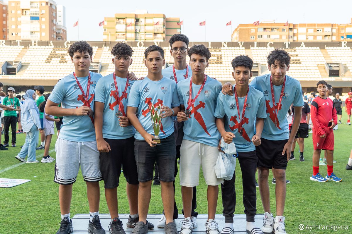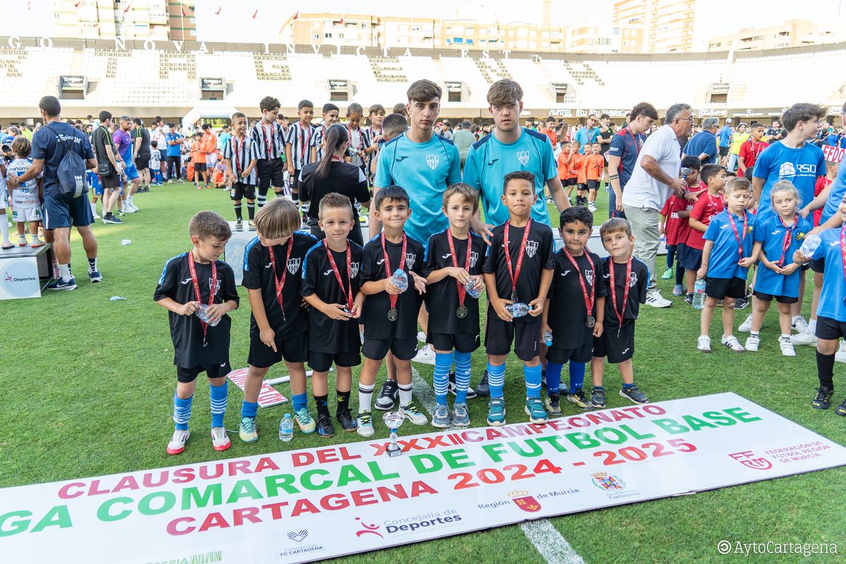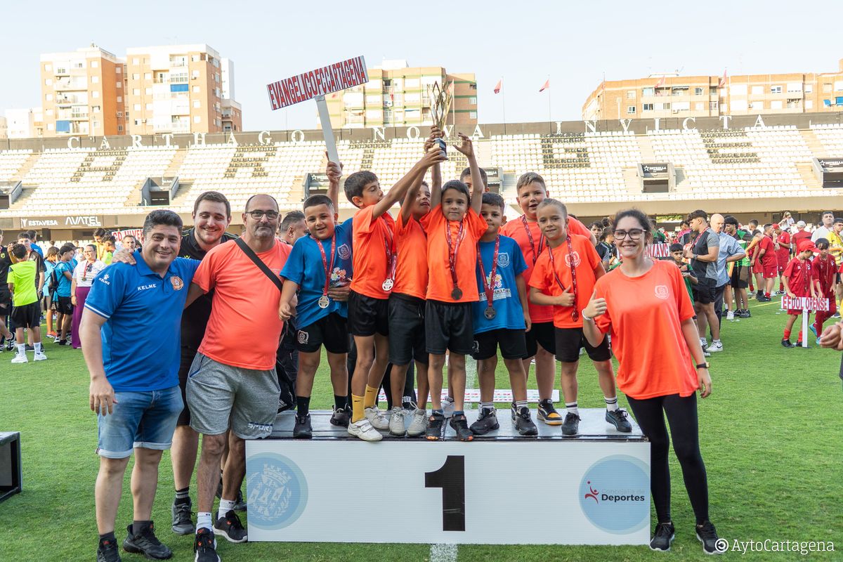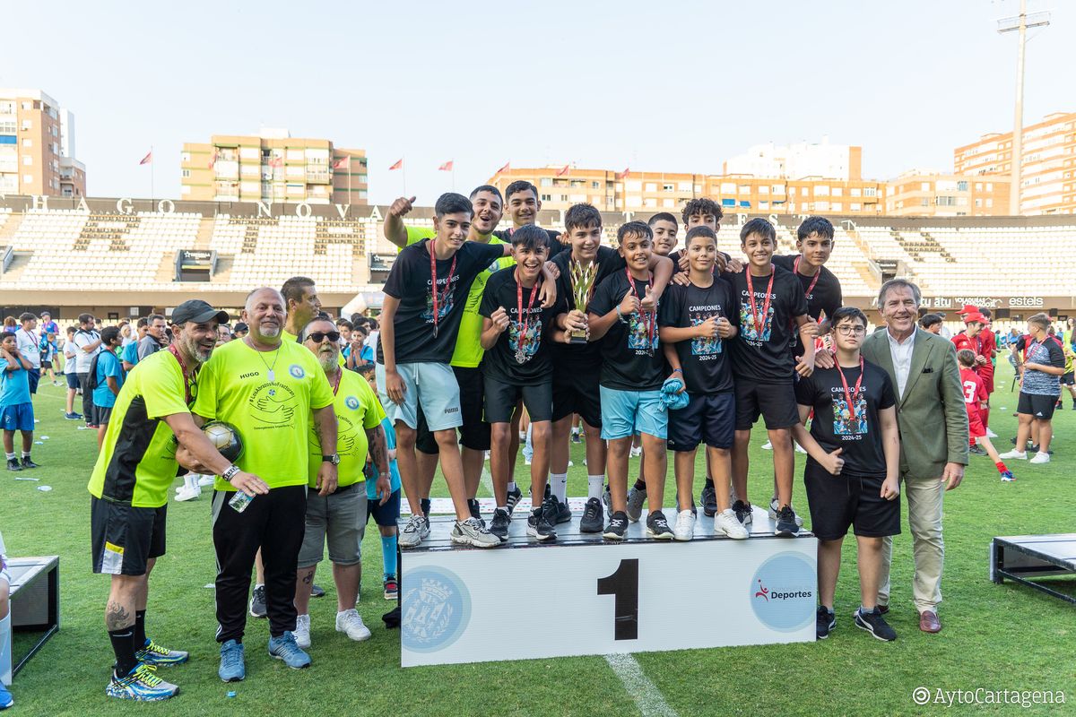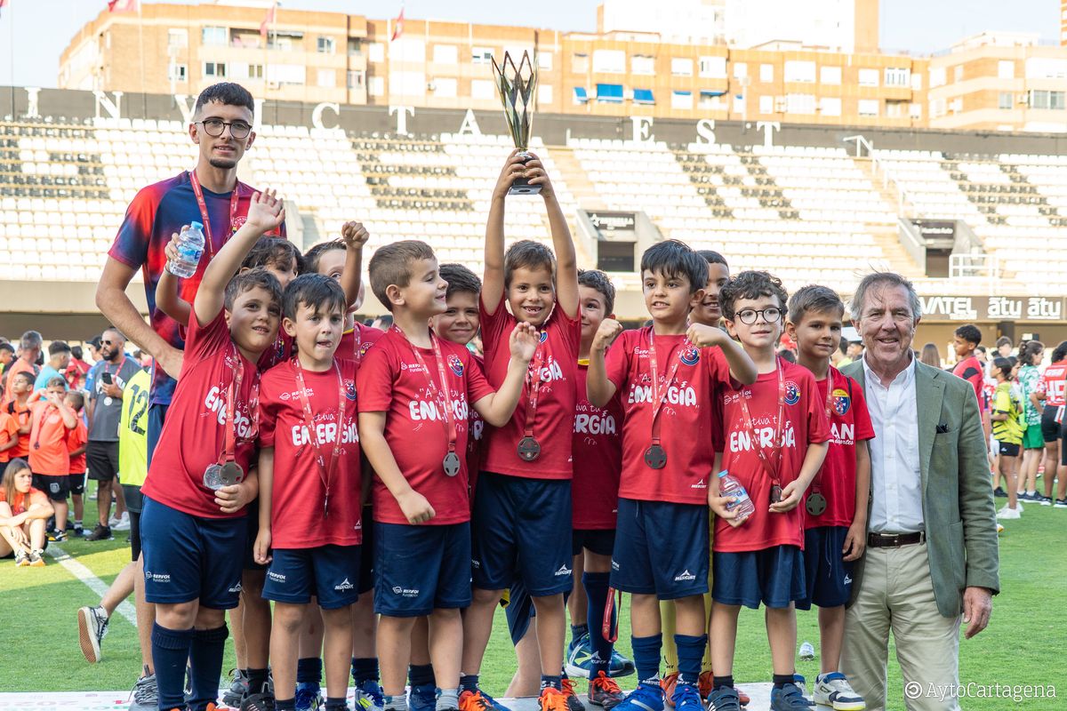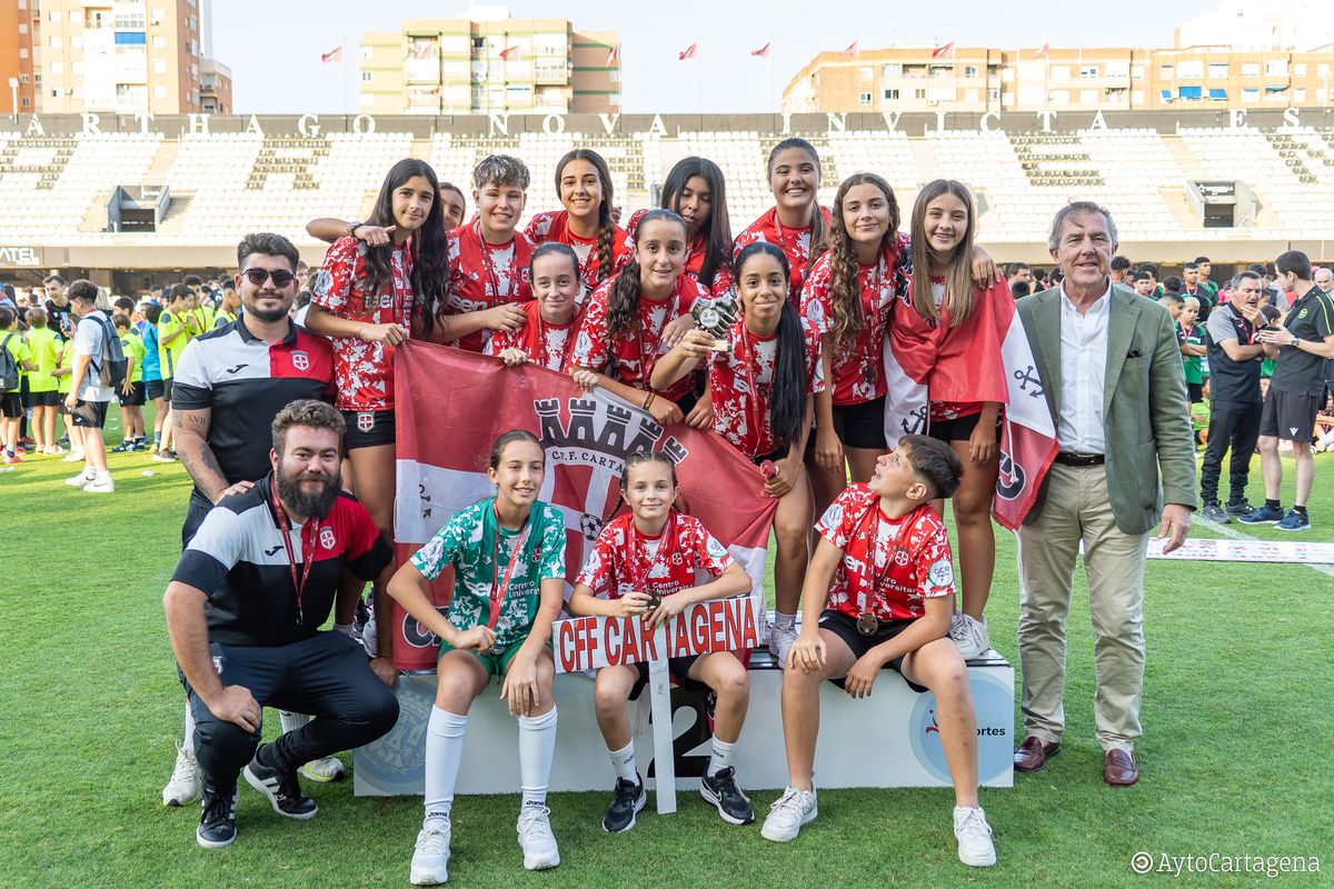 Cientos de chavales participaron en el acto celebrado este jueves en el Estadio Municipal Cartagonova, que incluyó desfiles y exhibiciones, culminando con la entrega de trofeos