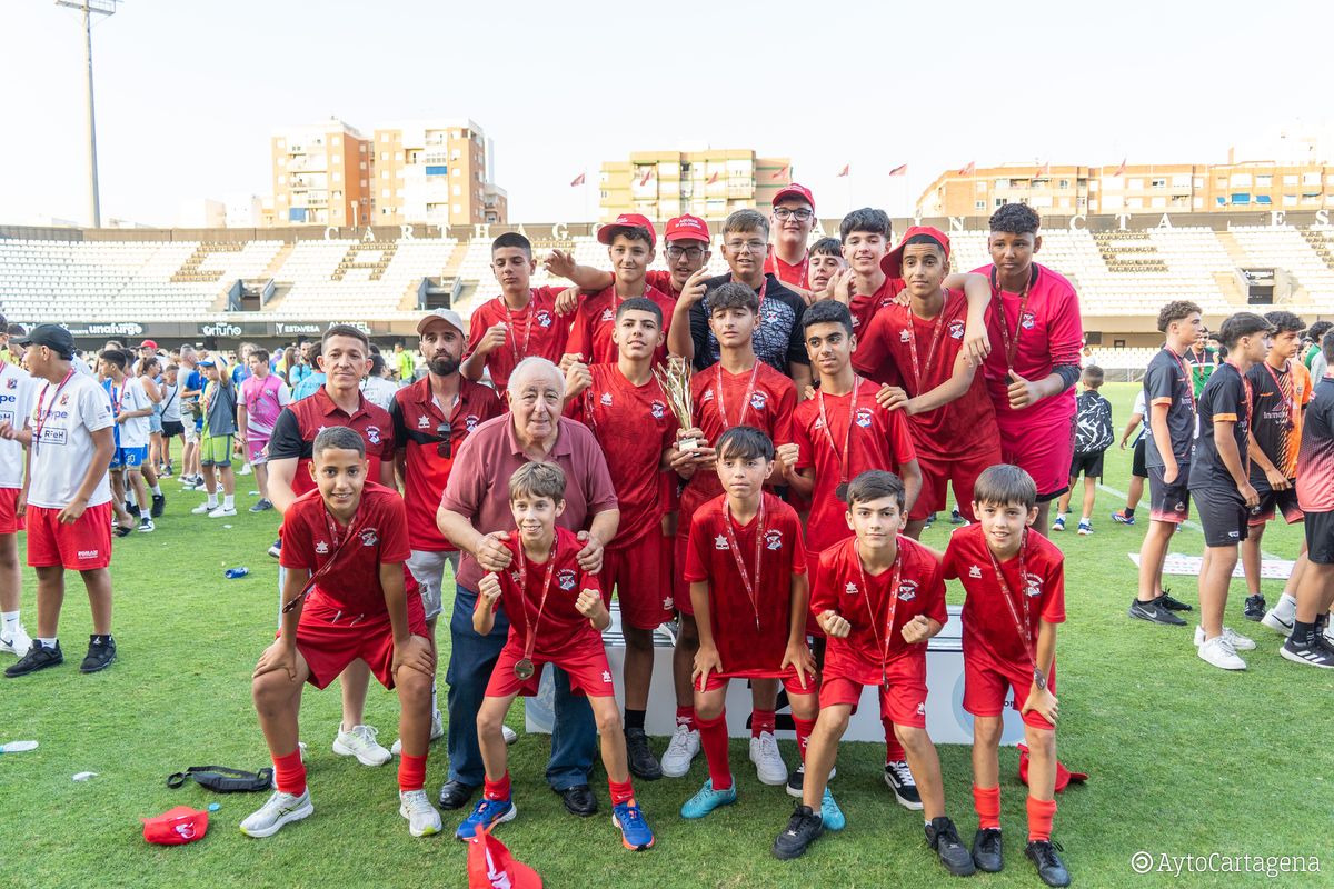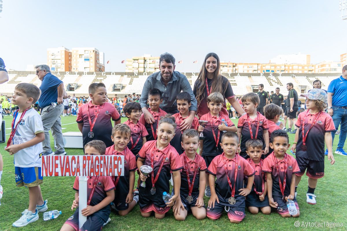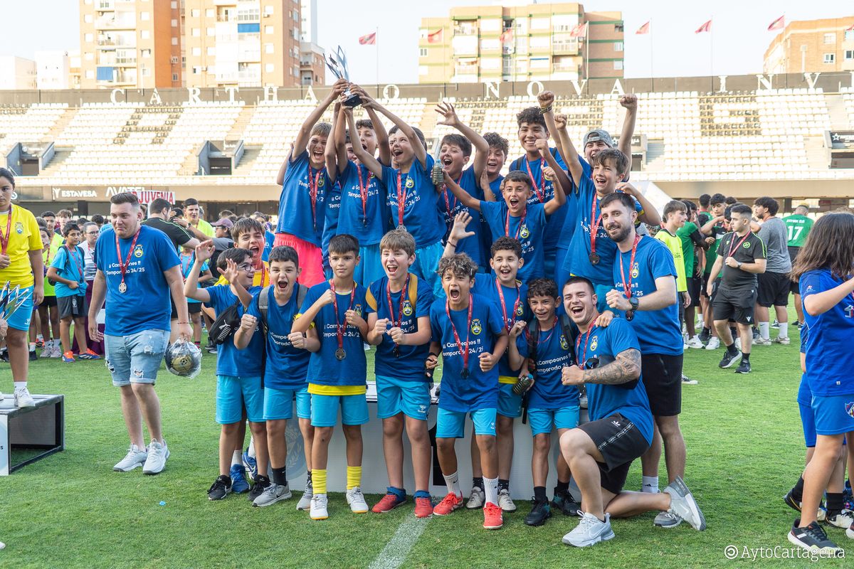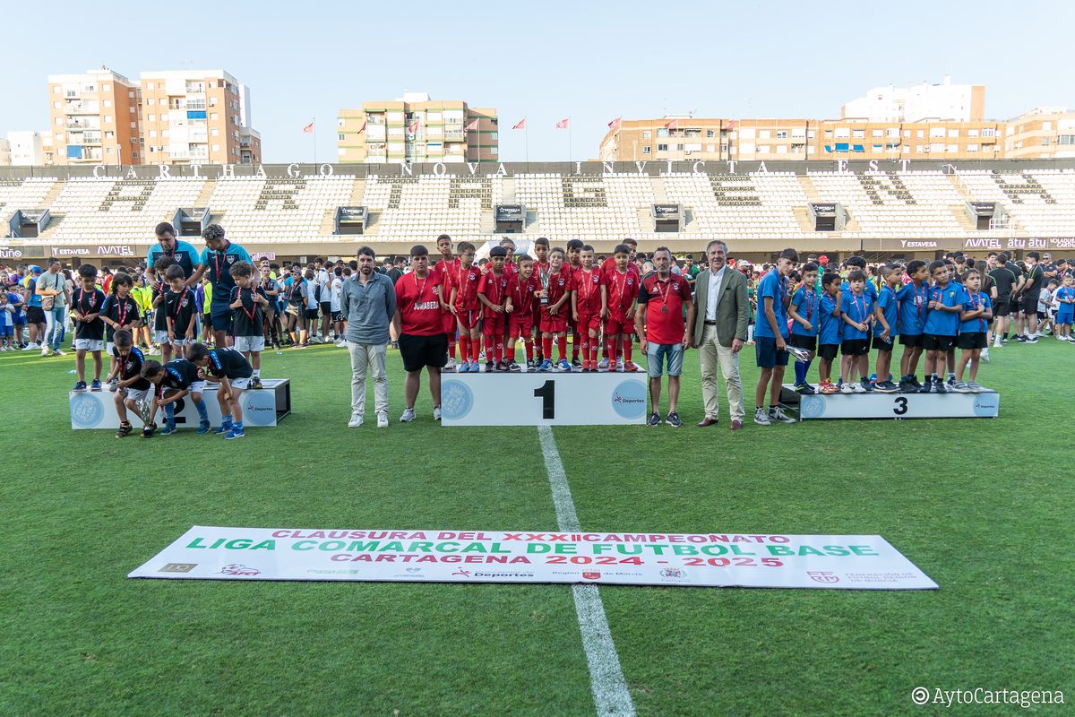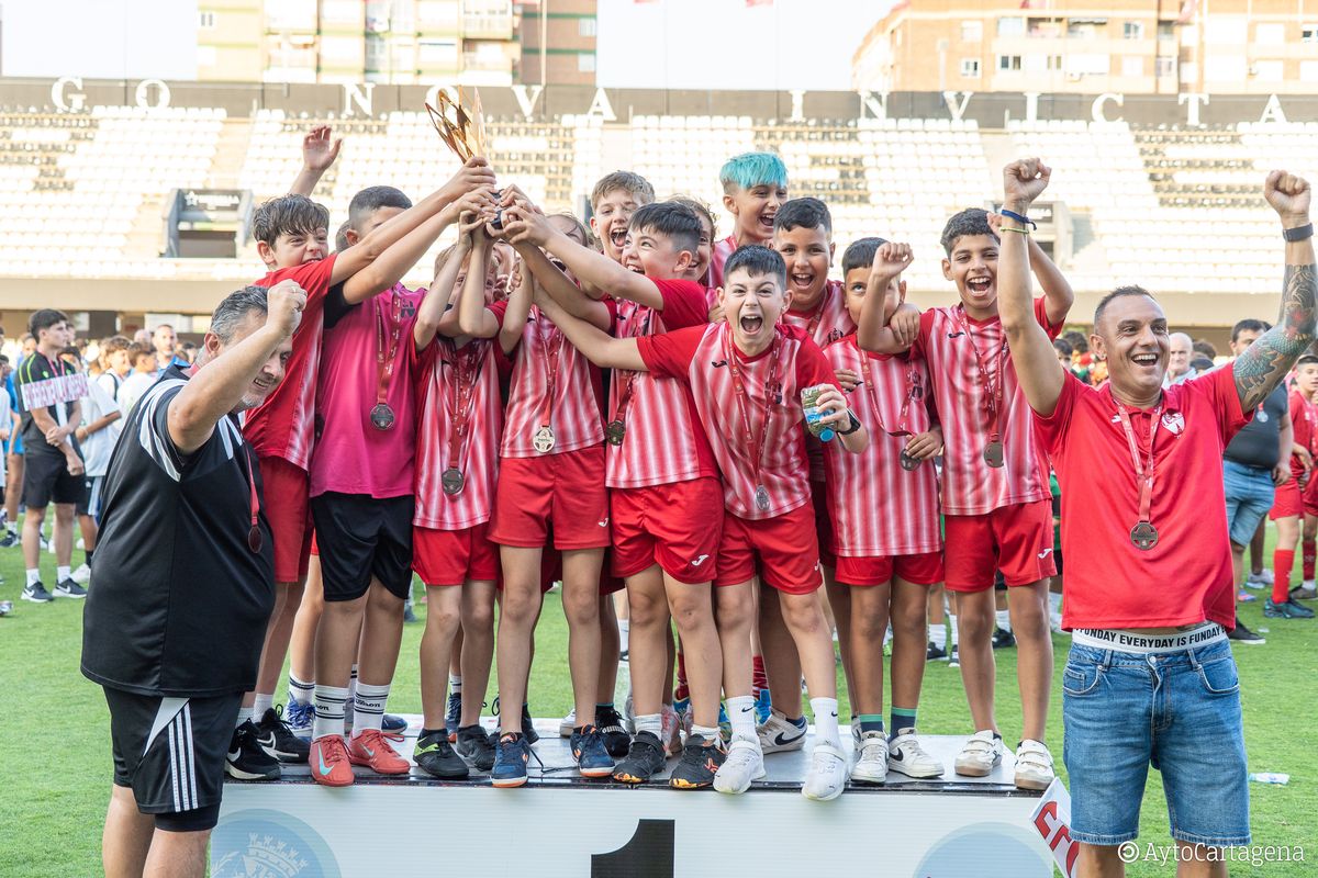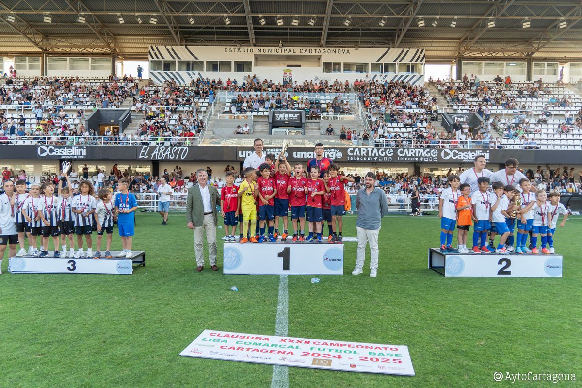 Cientos de chavales participaron en el acto celebrado este jueves en el Estadio Municipal Cartagonova, que incluyó desfiles y exhibiciones, culminando con la entrega de trofeos