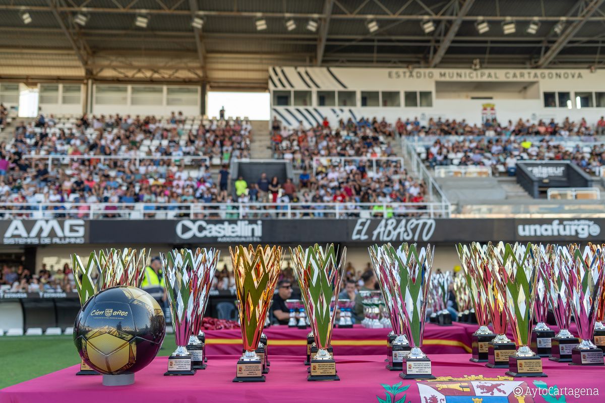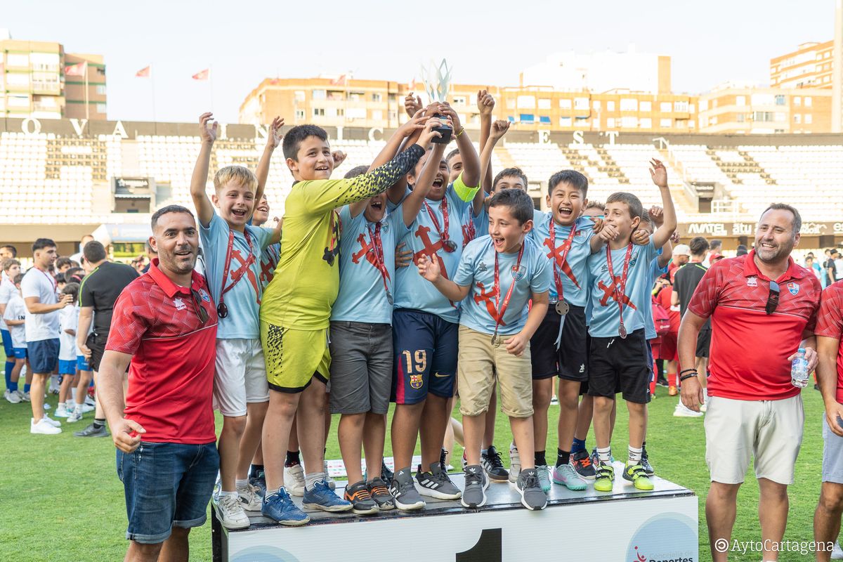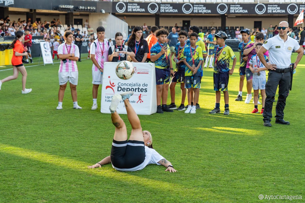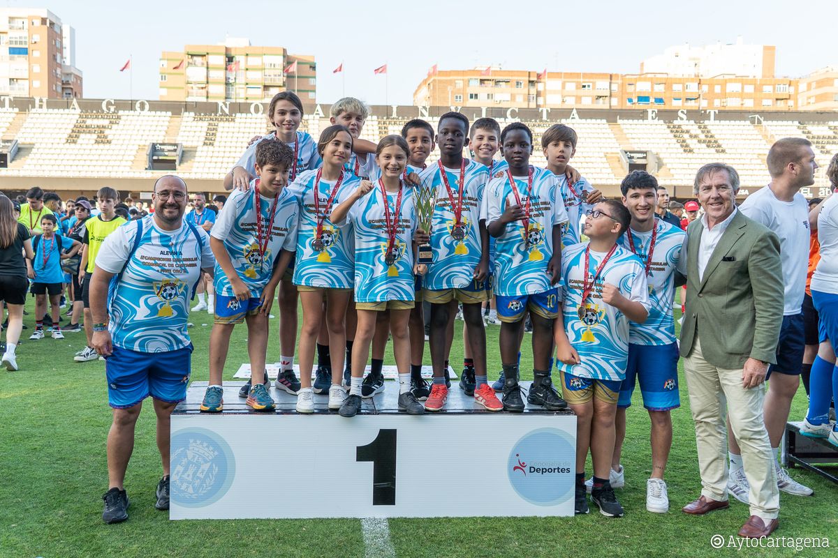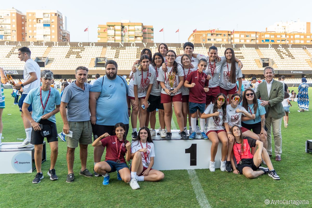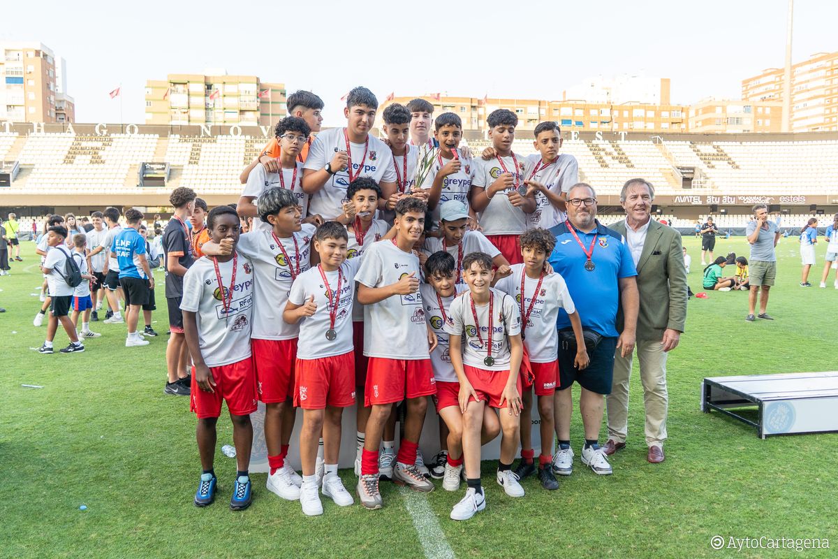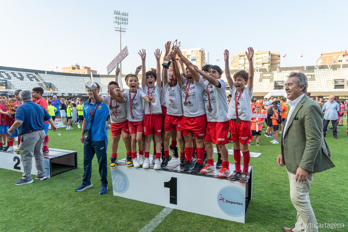 Cientos de chavales participaron en el acto celebrado este jueves en el Estadio Municipal Cartagonova, que incluyó desfiles y exhibiciones, culminando con la entrega de trofeos