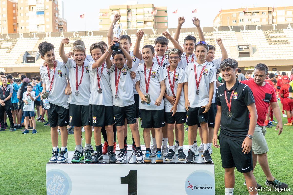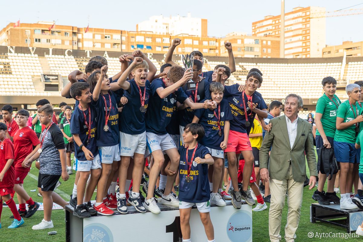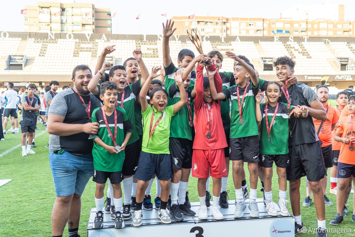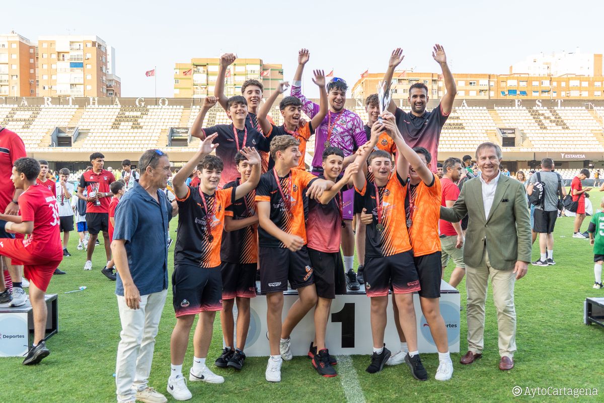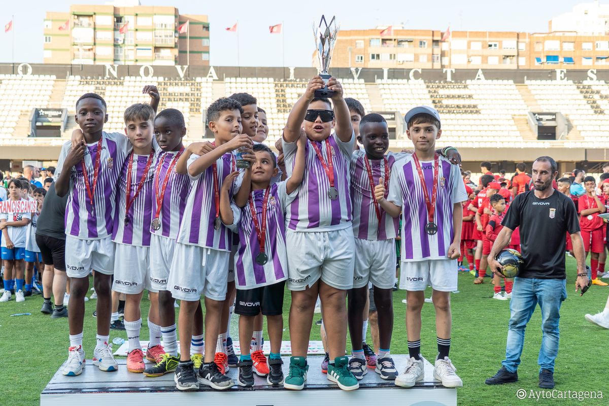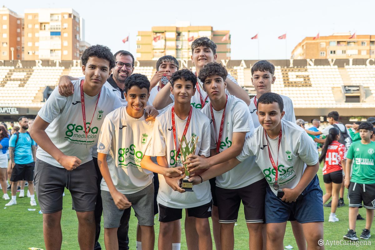 Cientos de chavales participaron en el acto celebrado este jueves en el Estadio Municipal Cartagonova, que incluyó desfiles y exhibiciones, culminando con la entrega de trofeos