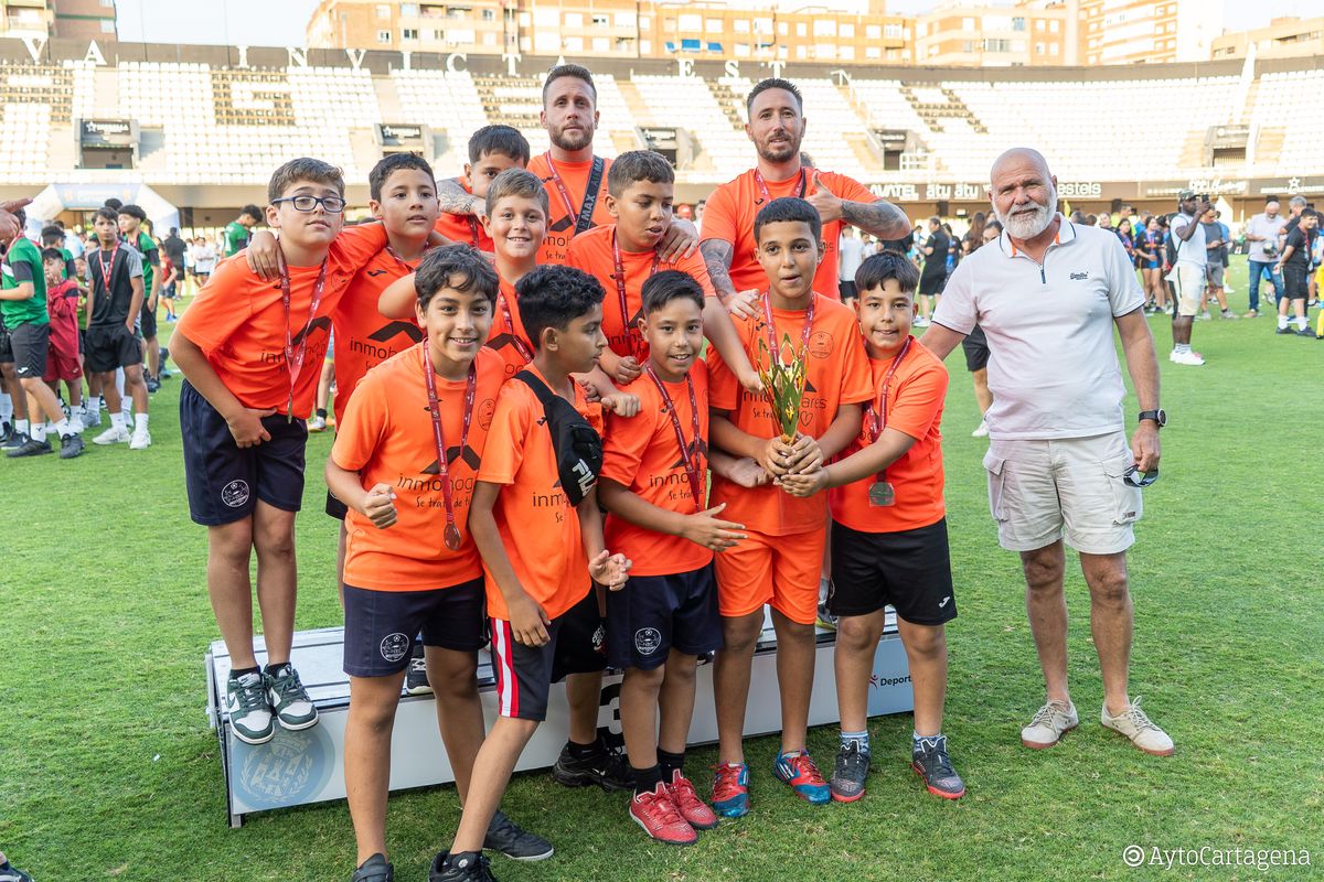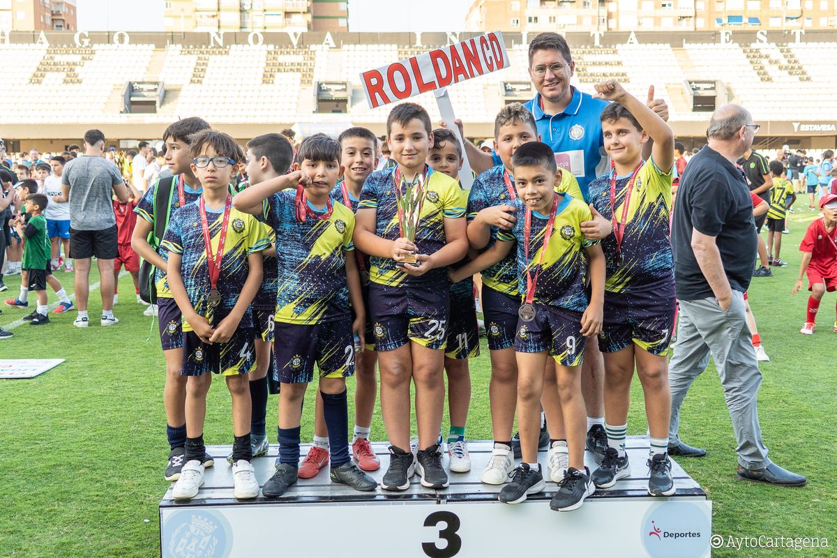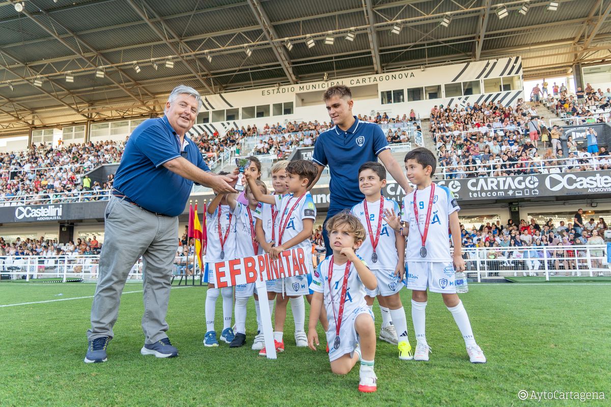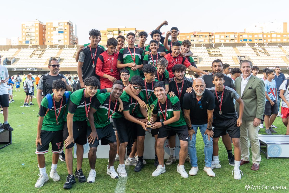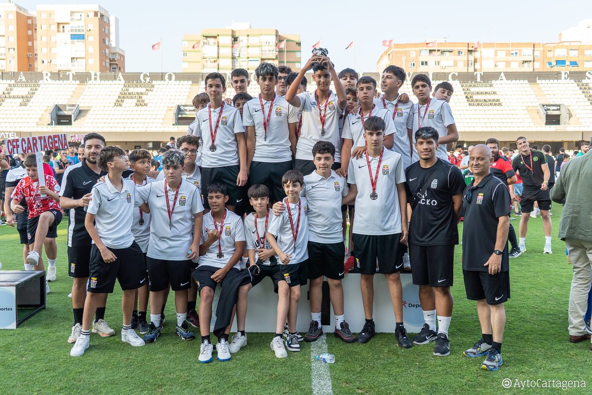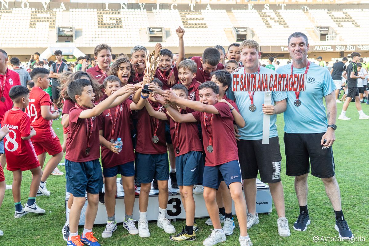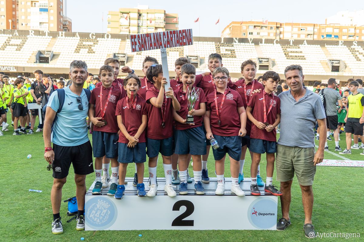 Cientos de chavales participaron en el acto celebrado este jueves en el Estadio Municipal Cartagonova, que incluyó desfiles y exhibiciones, culminando con la entrega de trofeos