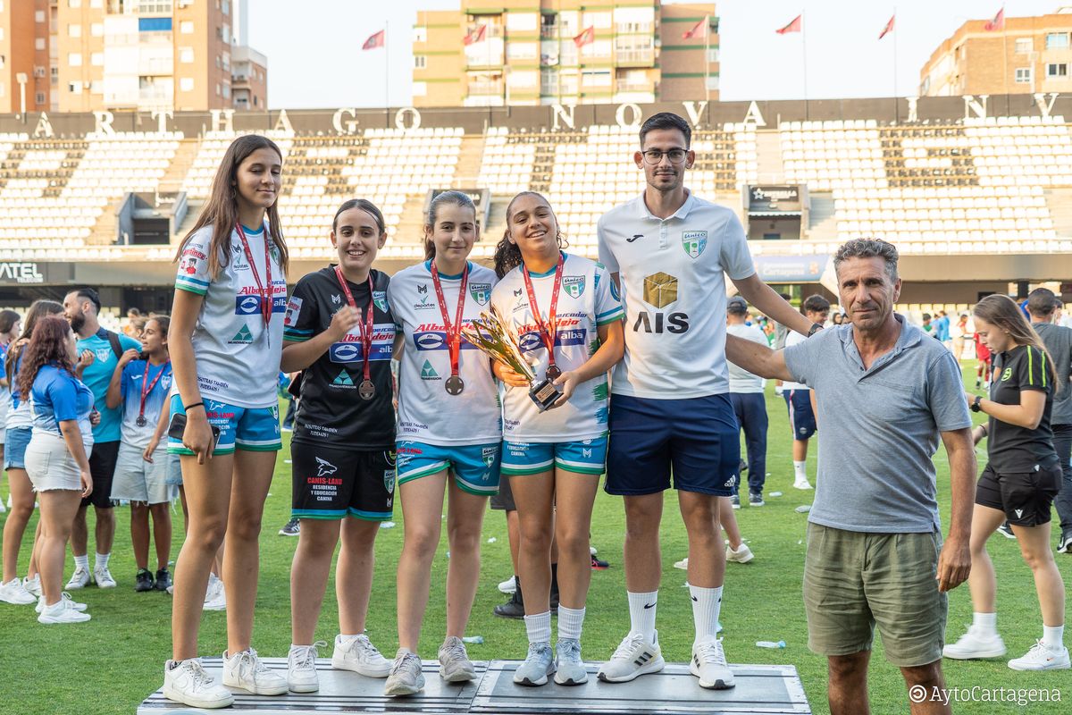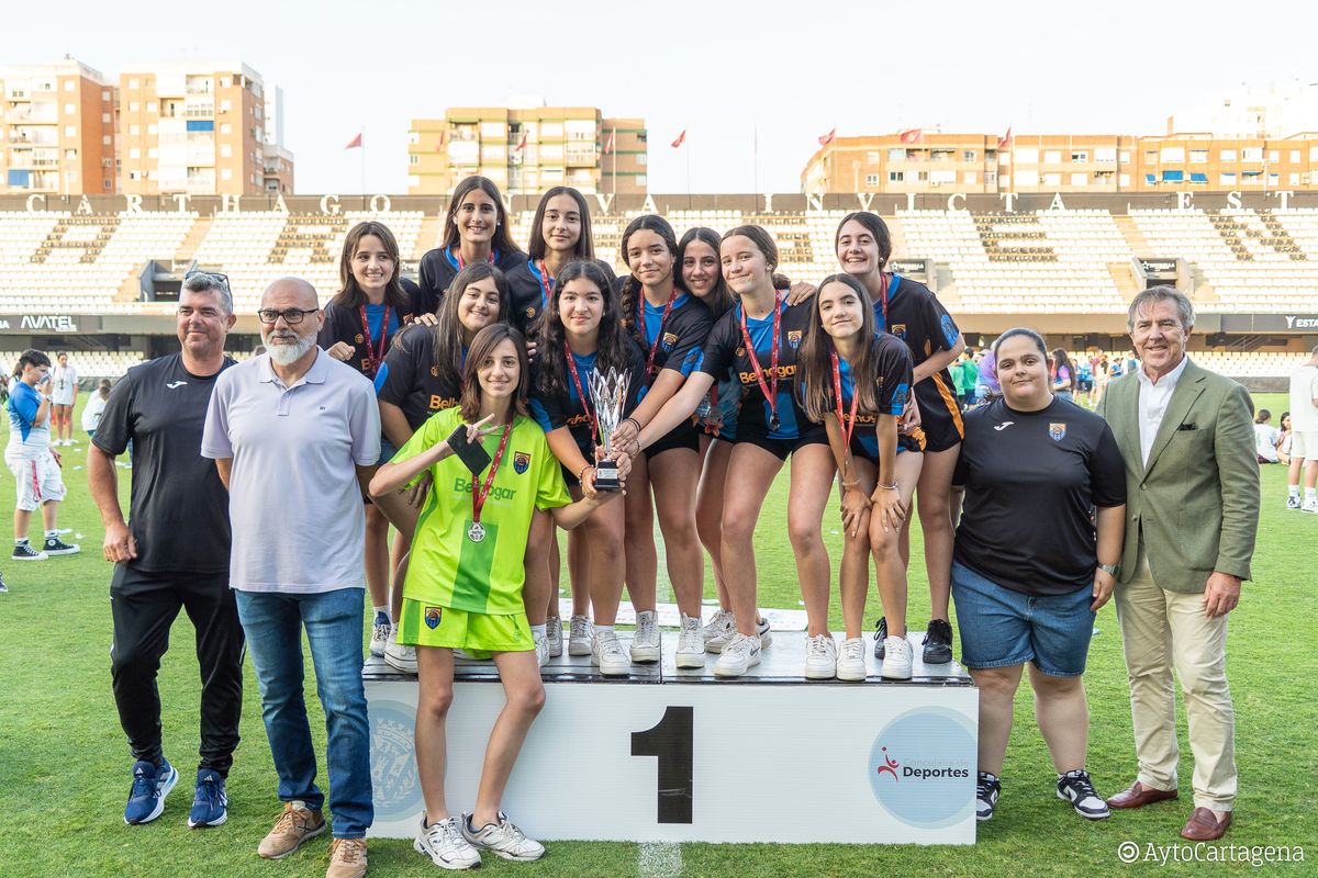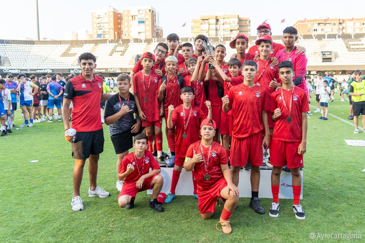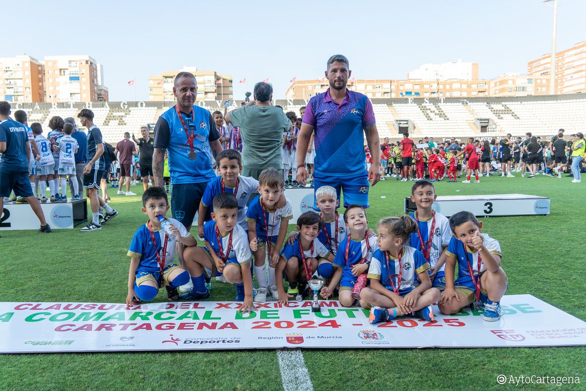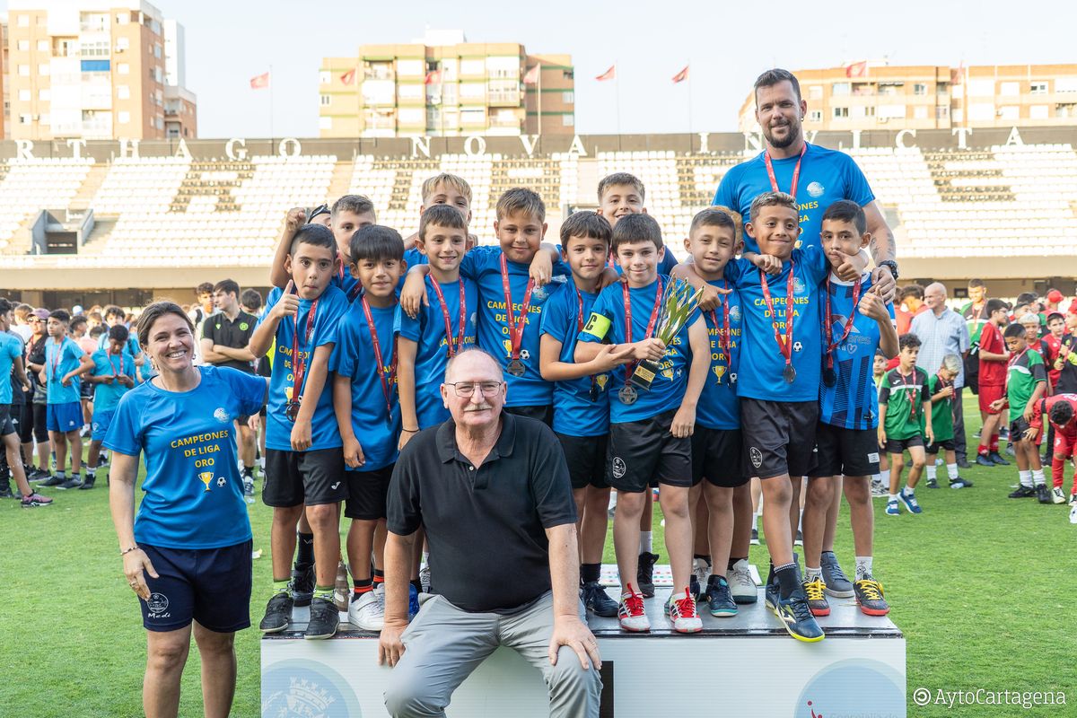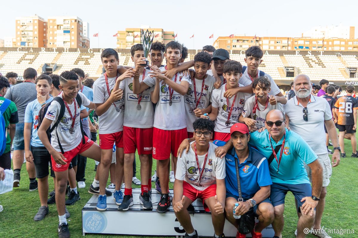 Cientos de chavales participaron en el acto celebrado este jueves en el Estadio Municipal Cartagonova, que incluyó desfiles y exhibiciones, culminando con la entrega de trofeos