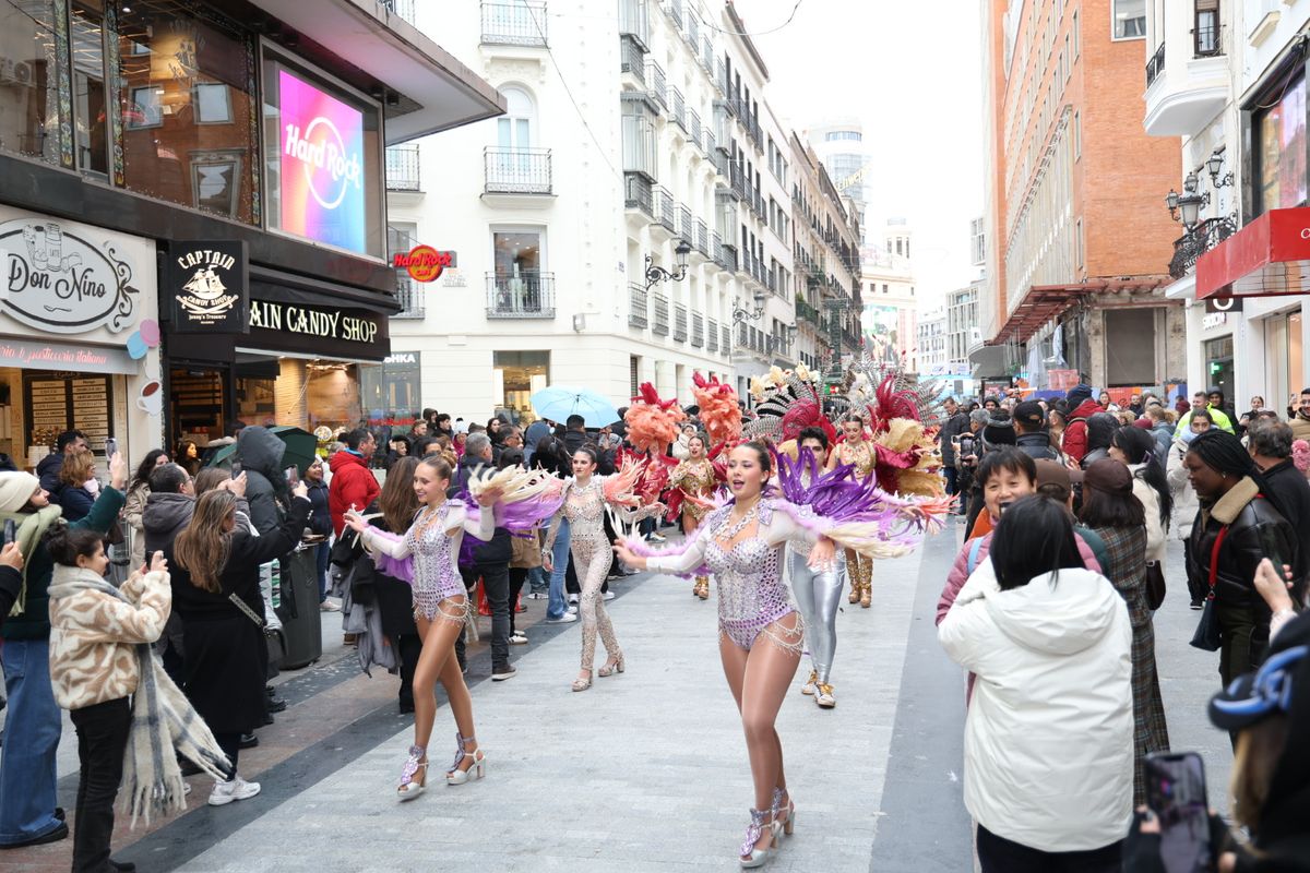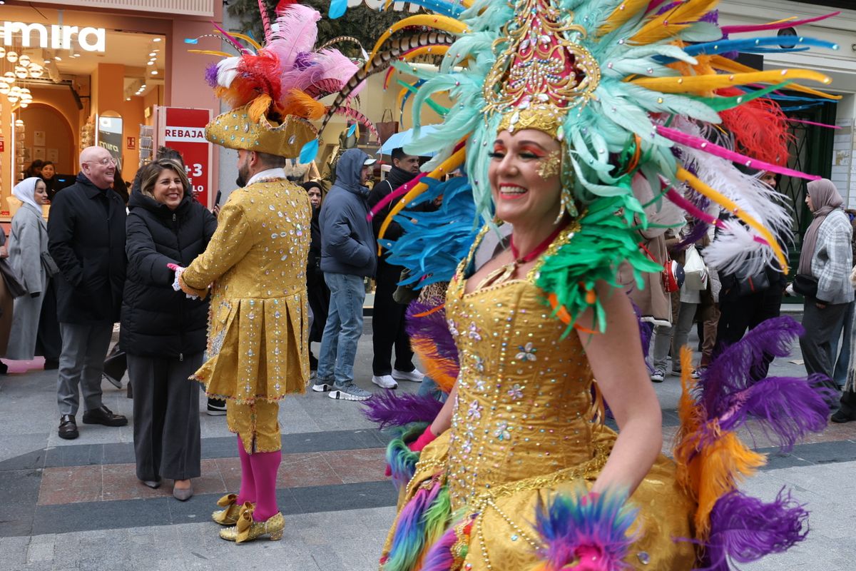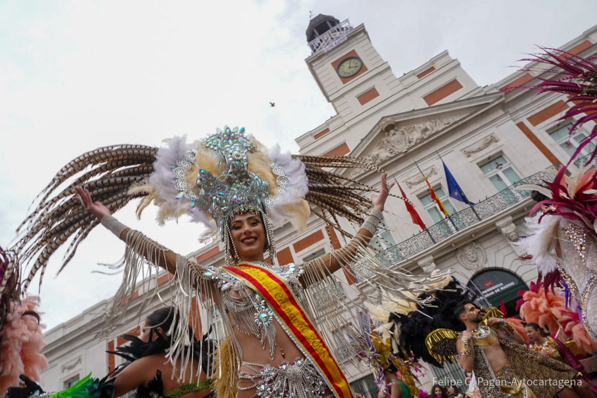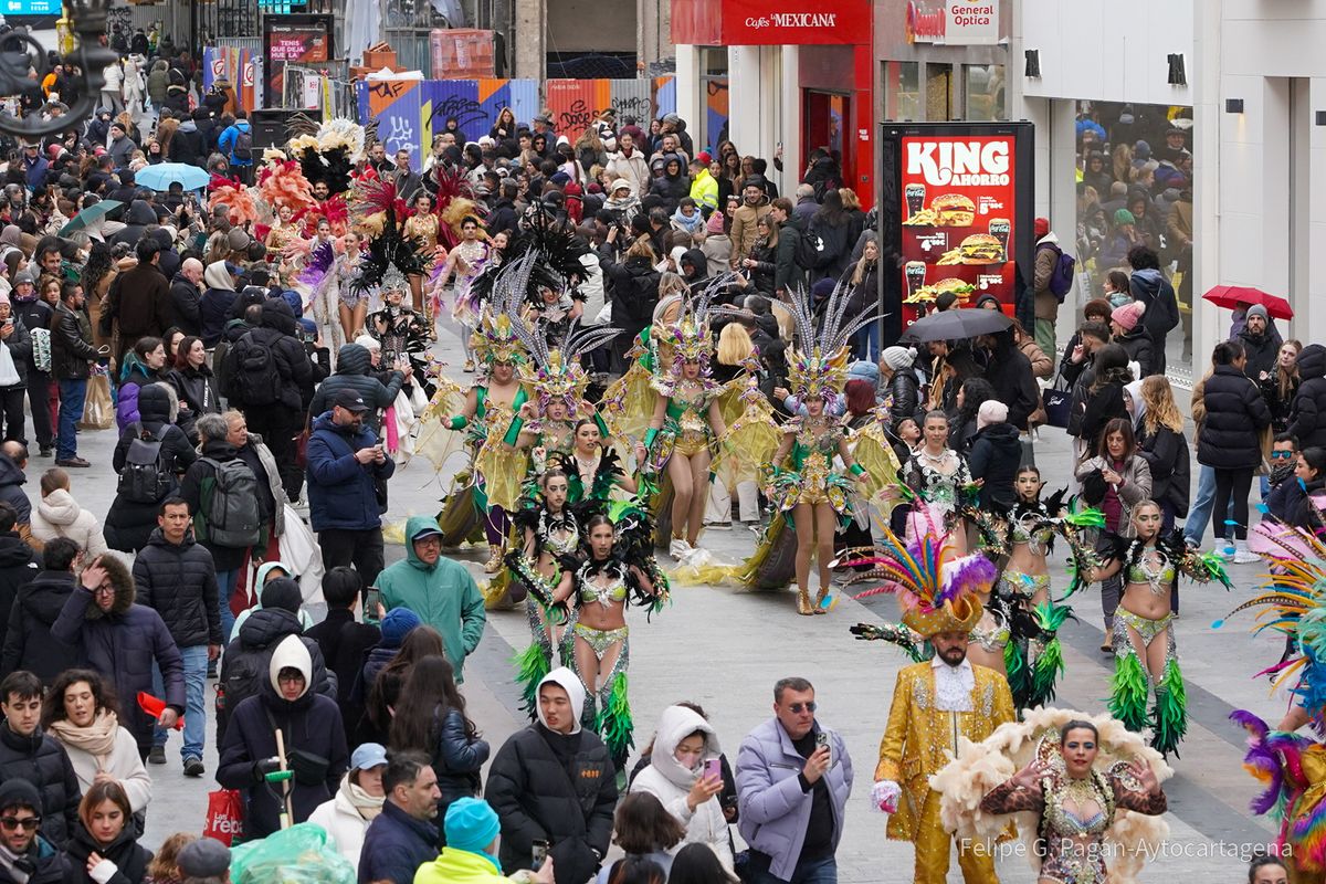 Enmarcado en las actividades organizadas por el Ayuntamiento con motivo de Fitur, el colorido y la fantasía de la fiesta cartagenera han recorrido este viernes una de las zonas más céntricas de la capital