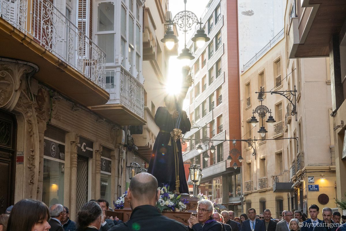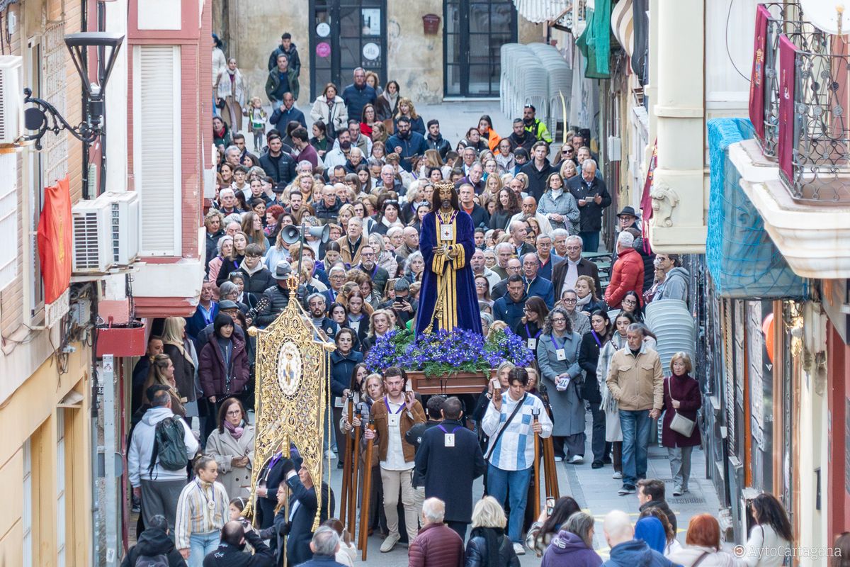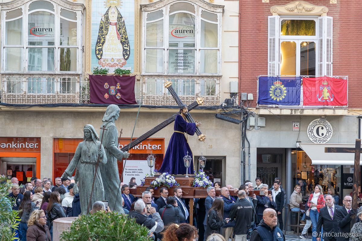 Las calles del centro de Cartagena volvieron a ser testigos, como cada Sábado de Pasión, del paso de las imágenes que protagonizan los desfiles de Semana Santa hasta el lugar desde donde saldrán en procesión