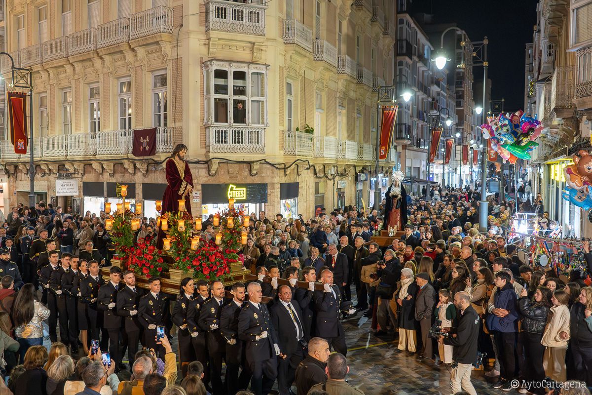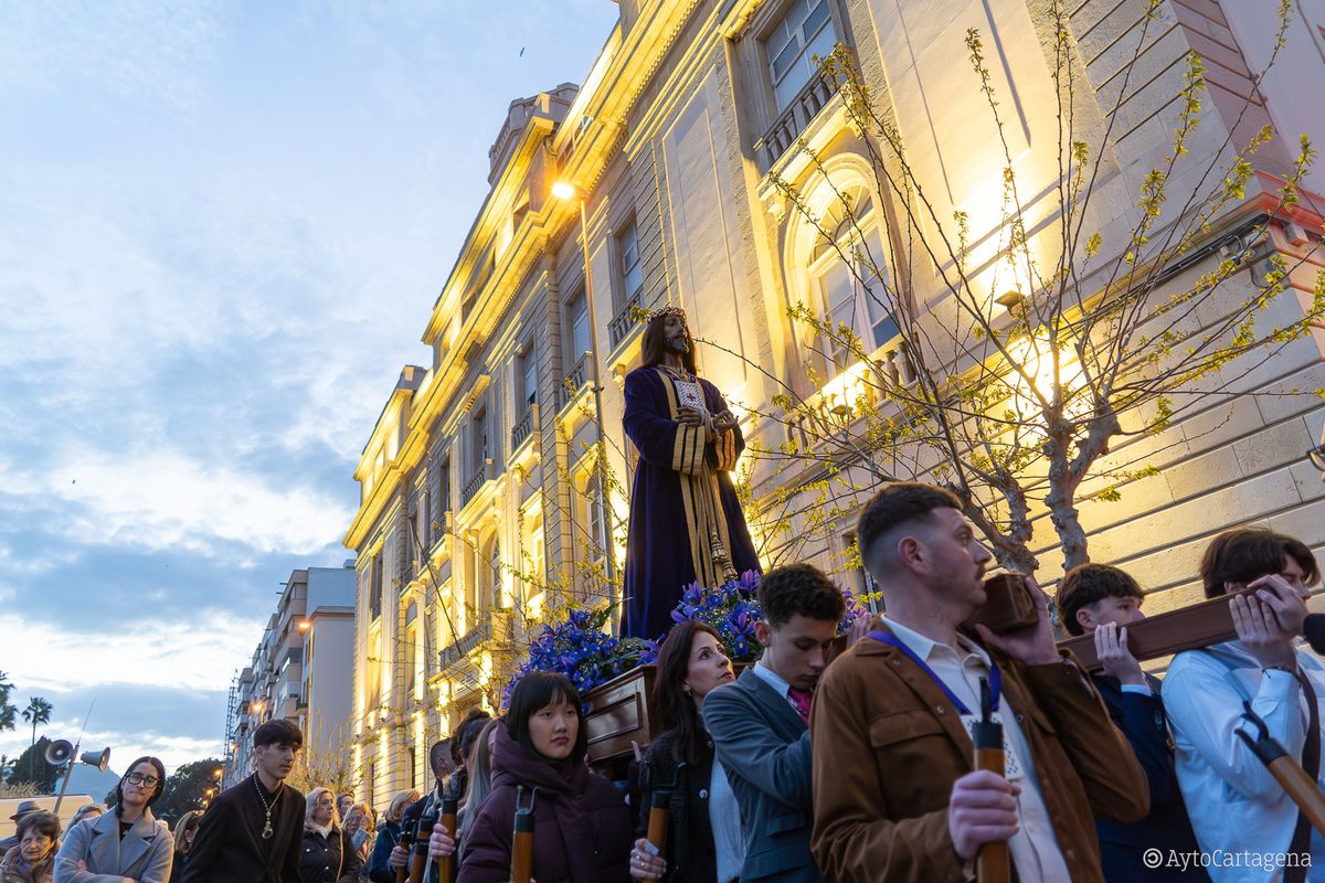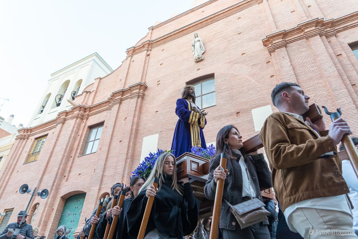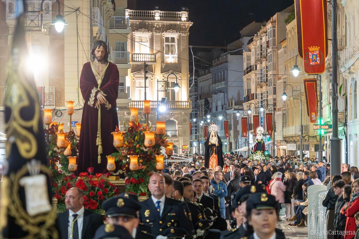 Las calles del centro de Cartagena volvieron a ser testigos, como cada Sábado de Pasión, del paso de las imágenes que protagonizan los desfiles de Semana Santa hasta el lugar desde donde saldrán en procesión