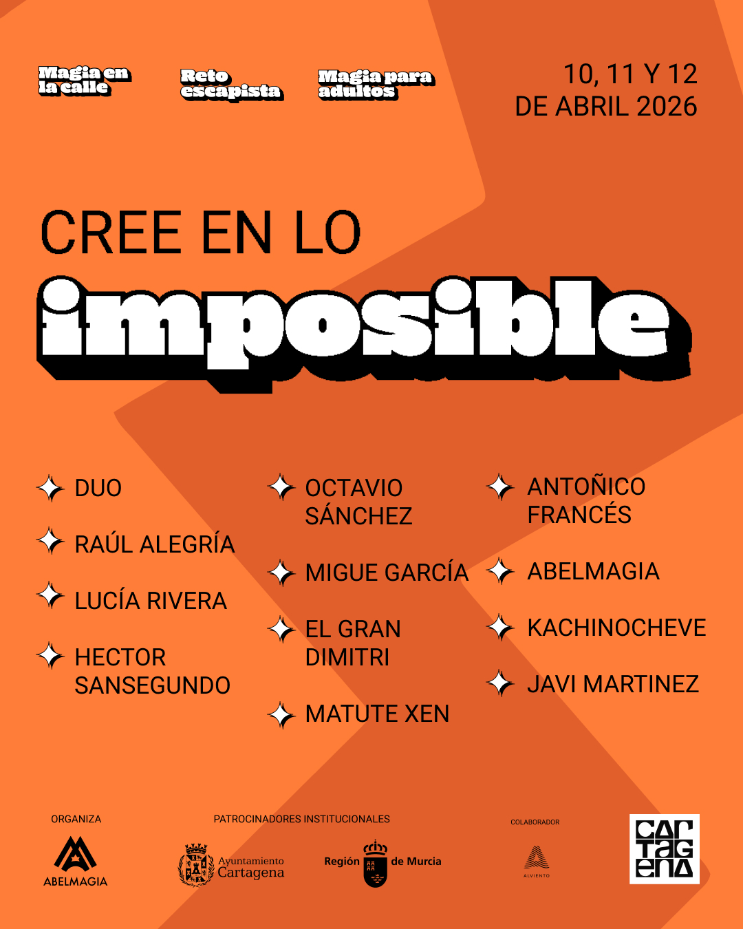 El Festival Internacional Cartagena es Magia regresa en su cuarta edición para transformar la ciudad portuaria en el epicentro de la ilusión, superando las expectativas de ediciones anteriores. Del 10 al 12 de abril, el evento reunirá en un mismo cartel a una representación de los maestros del ilusionismo y campeones mundiales, ofreciendo una experiencia inmersiva que combina grandes espectáculos de sala, magia de cerca, retos de escapismo y actuaciones a pie de calle. Más información y entradas para las galas del Centro Cultural Ramón Alonso Luzzy y el auditorio El Batel en en www.festivalcartagenaesmagia.com