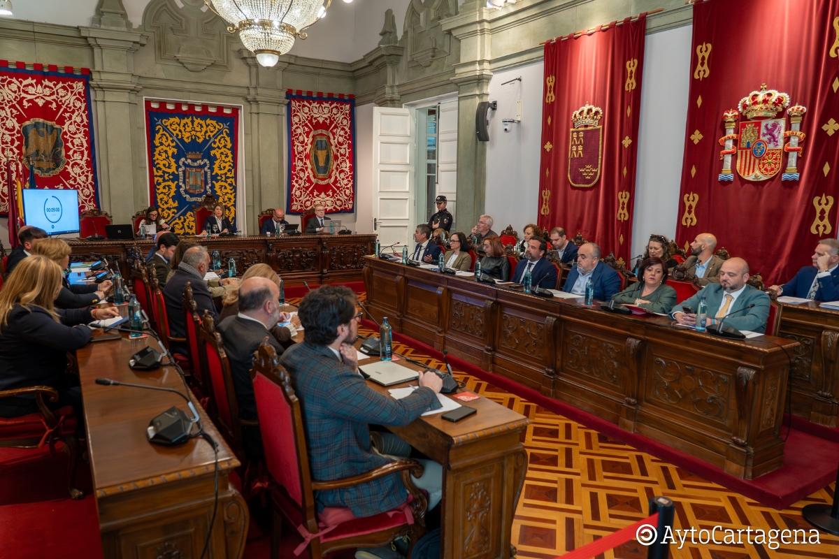 La Corporación municipal del Ayuntamiento de Cartagena ha celebrado dos plenos extraordinarios este 1 de abril en el Palacio Consistorial, que se han desarrollado esta mañana. Uno de ellos ha sido sobre informe de liquidación del presupuesto municipal de 2025, a propuesta del propio Gobierno. Y el otro sobre la gestión económica y el destino de dinero público, a petición del grupo municipal MC.