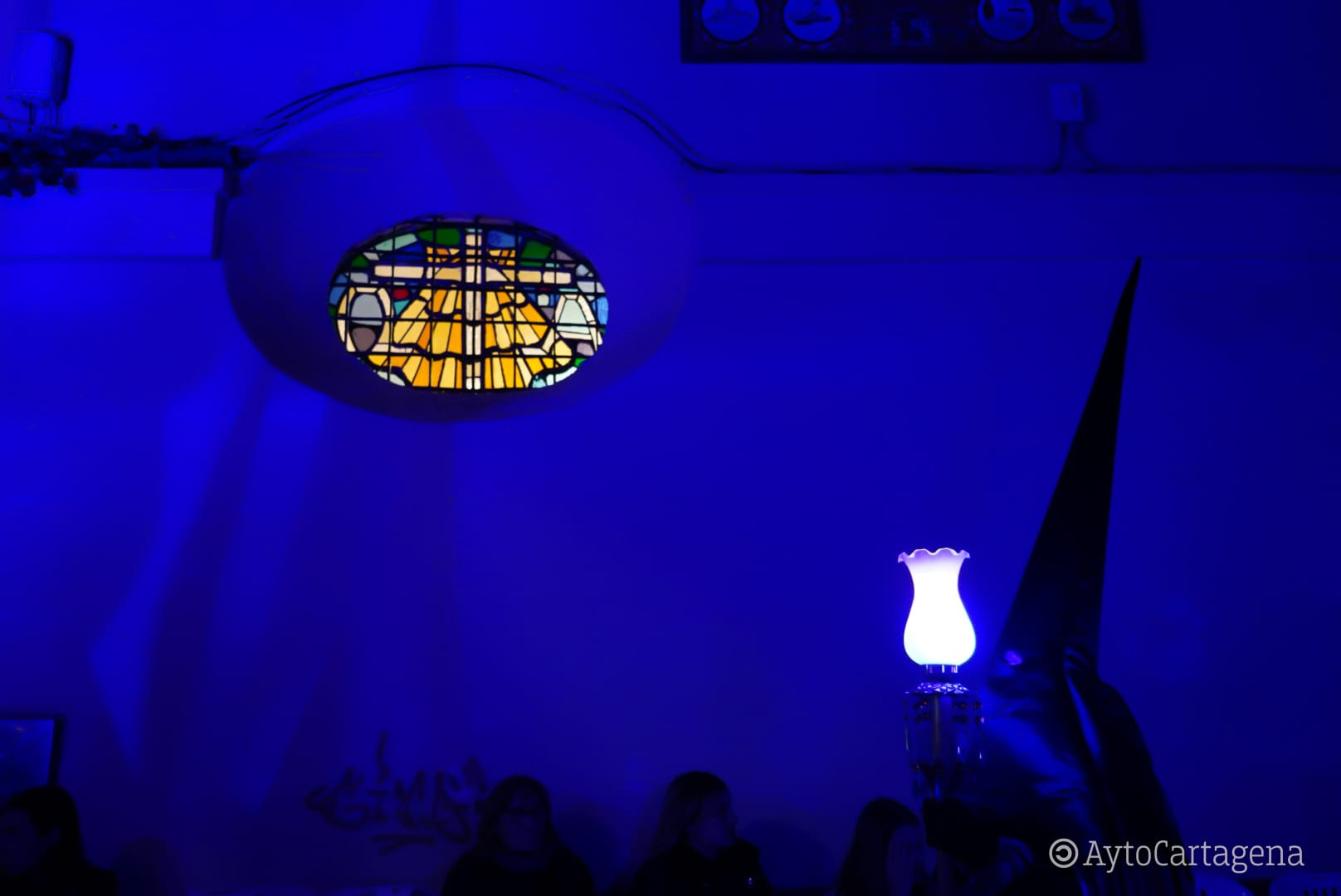 La alcaldesa de Cartagena, Noelia Arroyo, ha acompañado este jueves, 2 de abril, a Su Majestad la Reina Sofía, junto a Sus Altezas Reales las infantas Doña Elena y Doña Cristina, para presenciar la Procesión Solemne del Silencio y del Santísimo Cristo de los Mineros, de la Cofradía California. Han seguido el cortejo desde los balcones de la Real Sociedad Económica de Amigos del País, en la Calle del Aire, coincidiendo con la salida de la comitiva desde la Iglesia de Santa María de Gracia. Como es habitual, las luces de la ciudad se han apagado al paso de este cortejo.