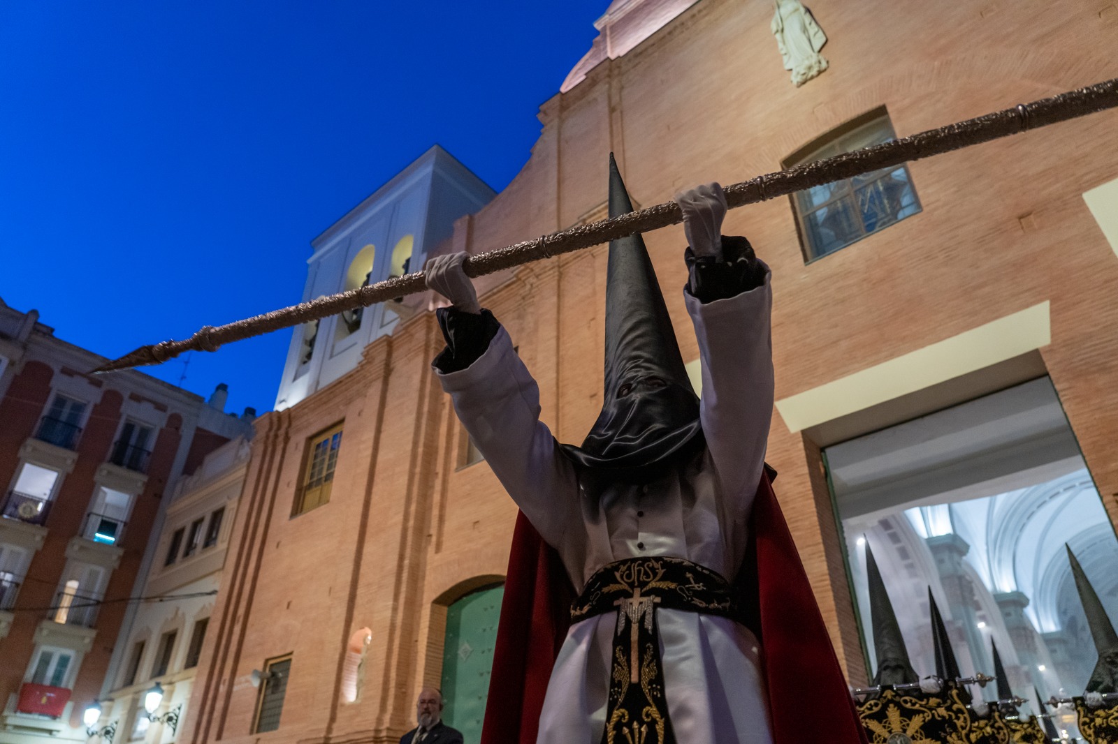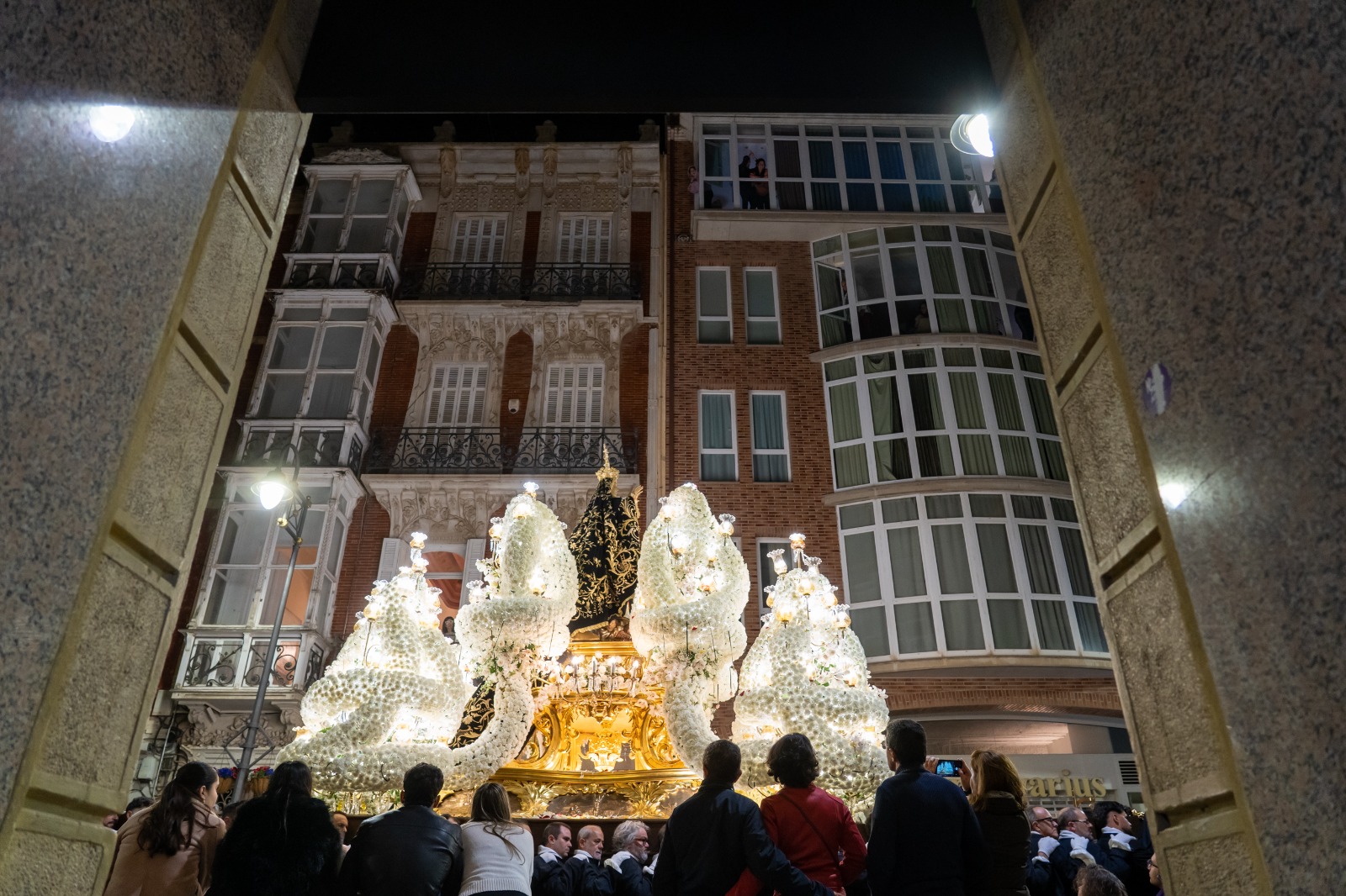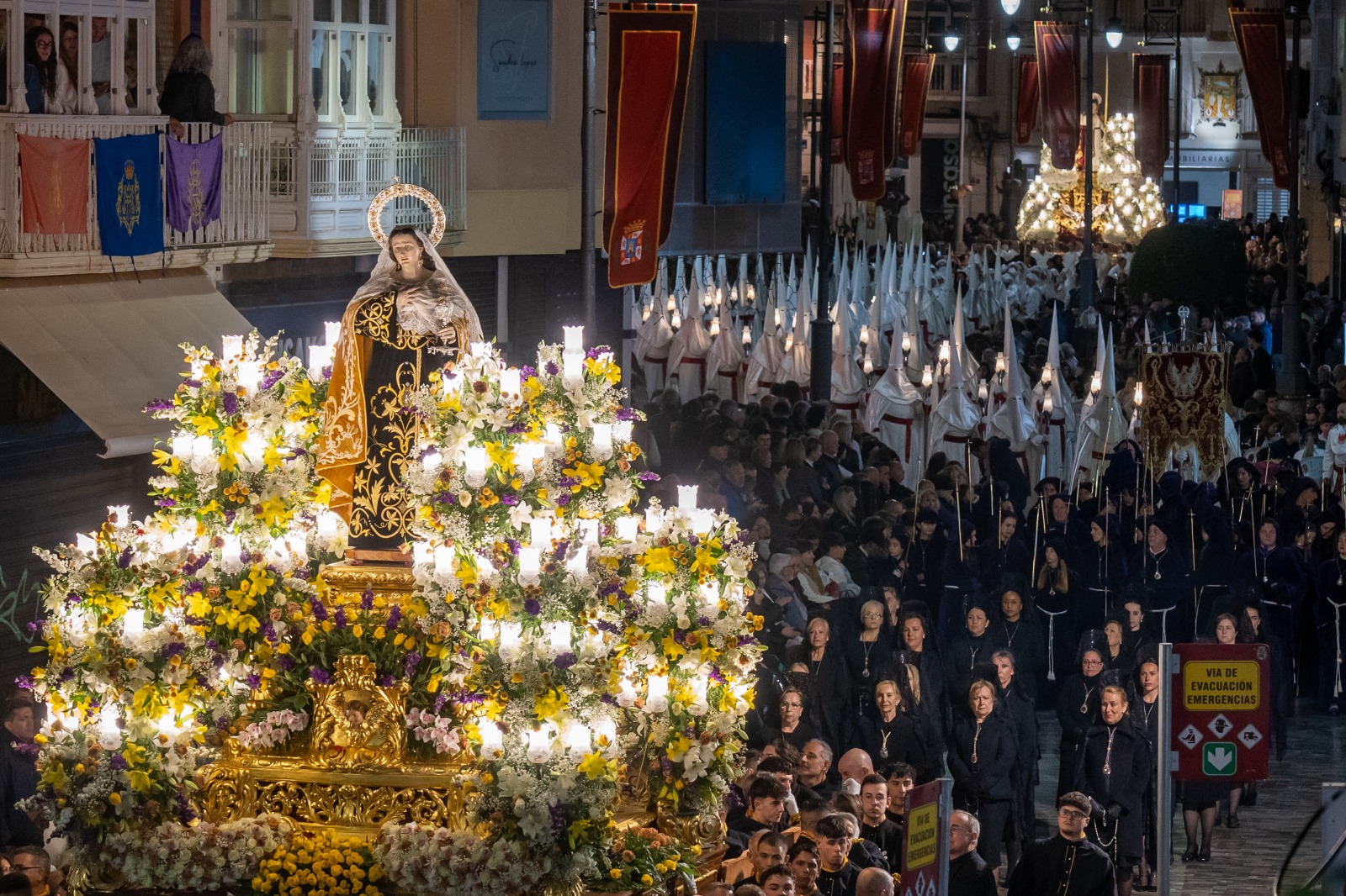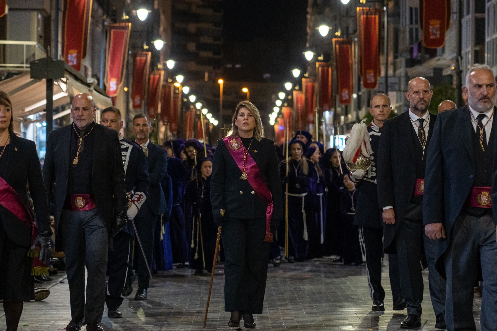 La comitiva, encabezada por la alcaldesa Noelia Arroyo, acompaña a la Cofradía Marraja en una solemne procesión marcada por el recogimiento