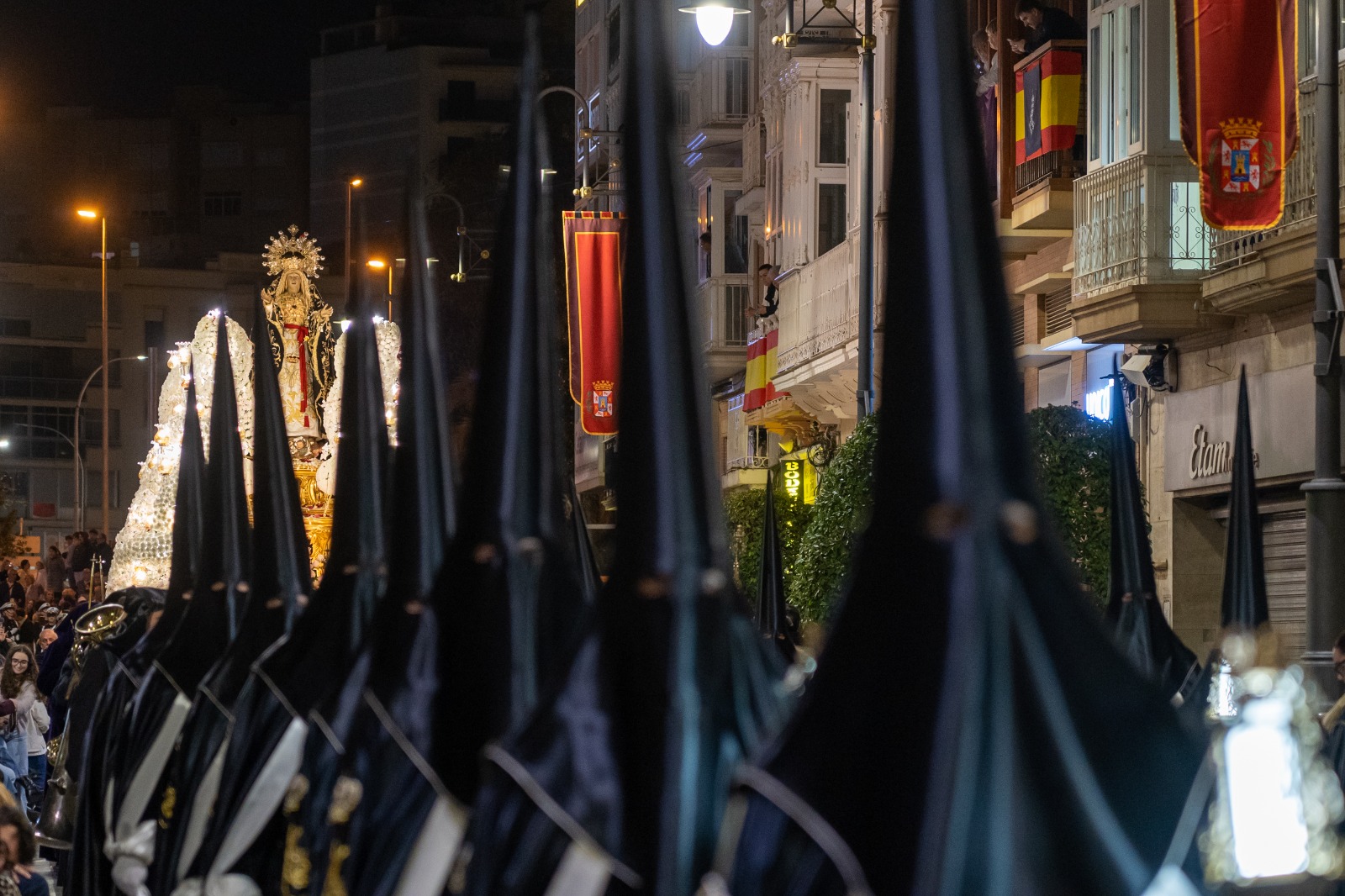 La corporación municipal del Ayuntamiento de Cartagena, liderada por la alcaldesa Noelia Arroyo, participó este Viernes Santo en la tradicional procesión del Santo Entierro, uno de los desfiles pasionales más solemnes de la Semana Santa, festividad declarada de Interés Turístico Internacional. La comitiva siguió al trono del Santo Sepulcro. Contó con la presencia de los ediles de la corporación, entre los que se encontraban los tenientes de alcalde Gonzalo López Pretel, Diego Ortega, Cristina Mora y José Ramón Lorca; así como los portavoces Ignacio Jáudenes, Jesús Giménez, Manuel Torres y Juan Pedro Torralba.