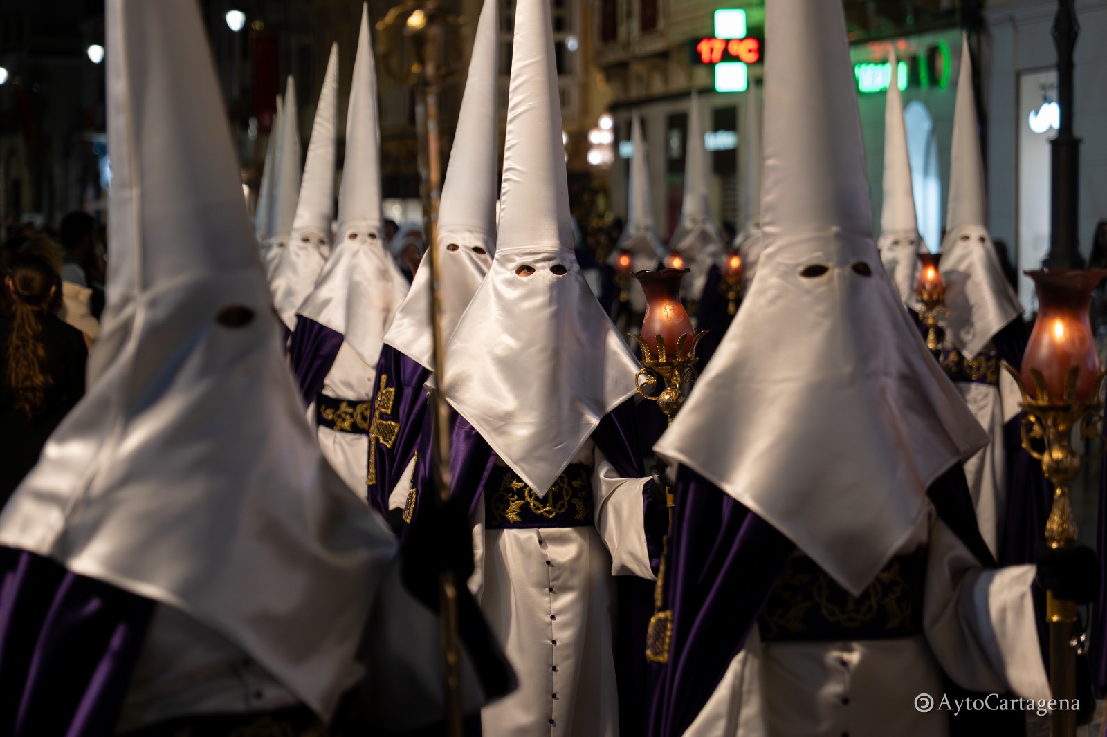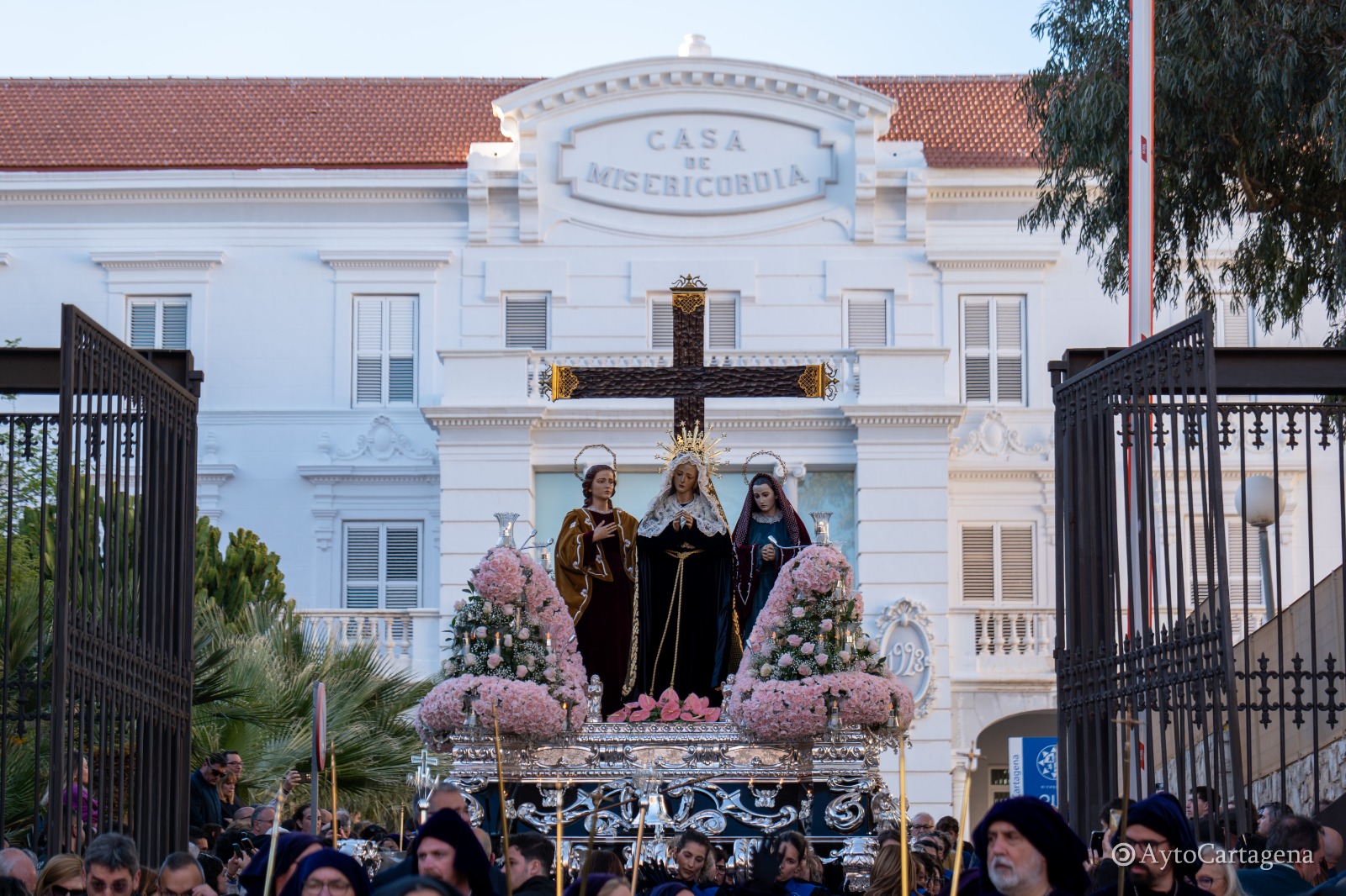 La Procesión de las Santas Mujeres partió desde el Rectorado de la Universidad Politécnica de Cartagena, sumándose al recorrido principal. Su incorporación puso de relieve la tradición y devoción femenina dentro de la Semana Santa.