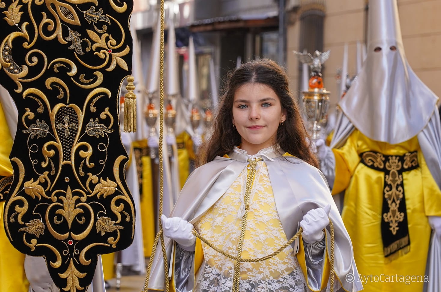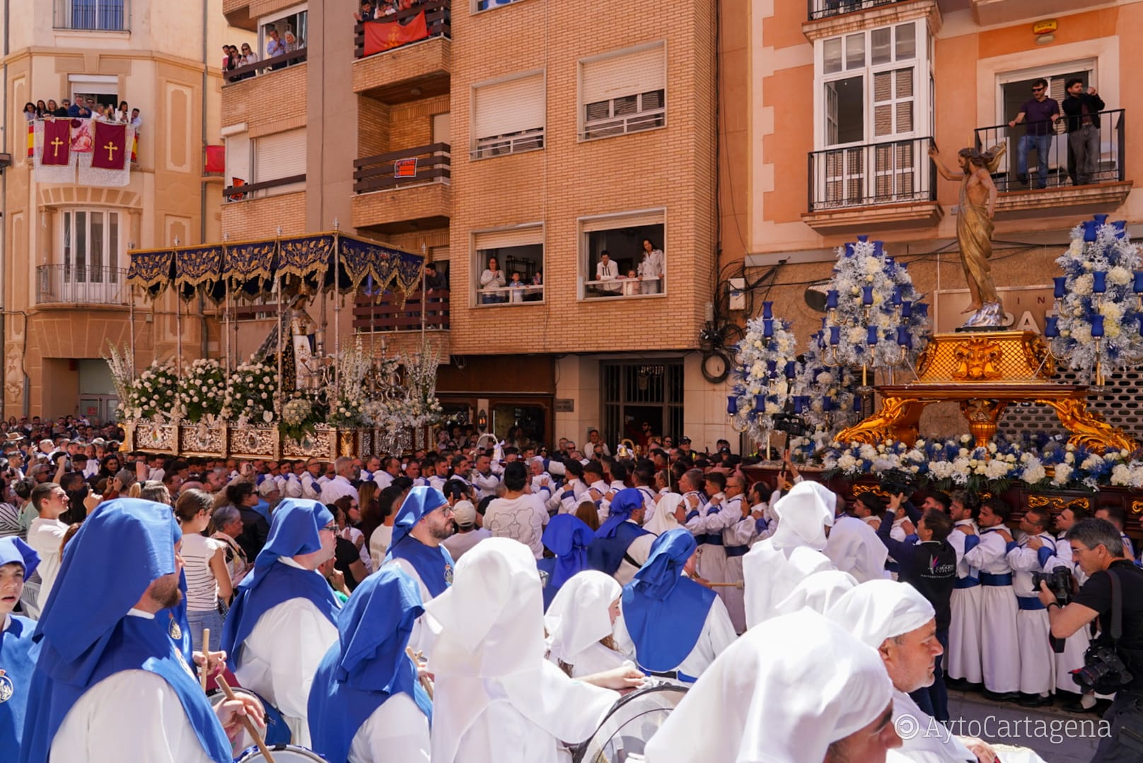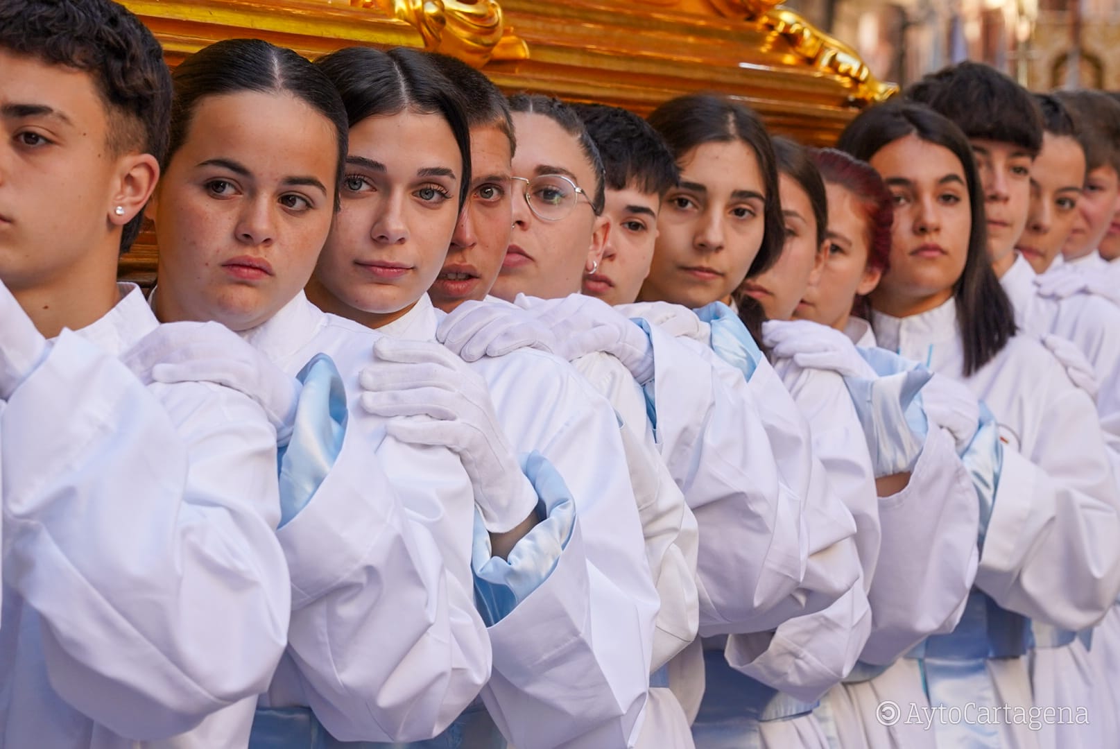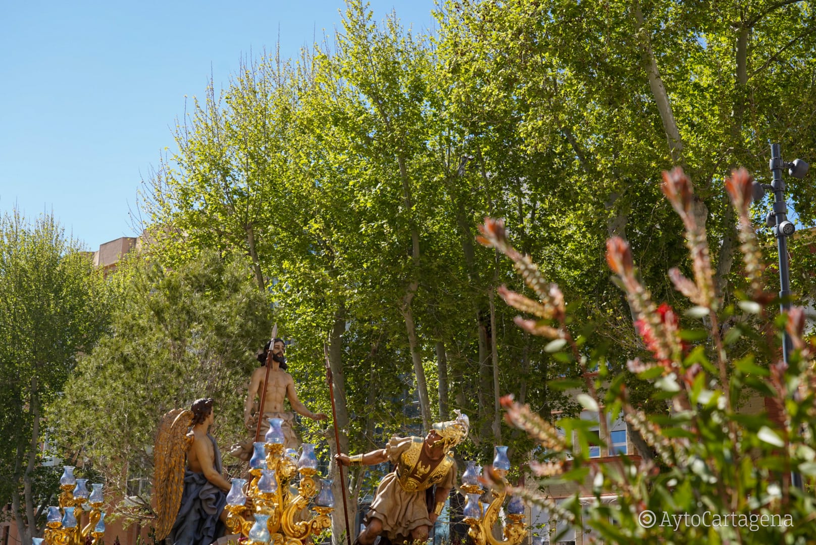 Cartagena ha despertado con el repique de campanas y el blanco radiante de la Real e Ilustre Cofradía de Nuestro Padre Jesús Resucitado, devolviendo a las calles la luz y la esperanza en el desfile más alegre de la ciudad.