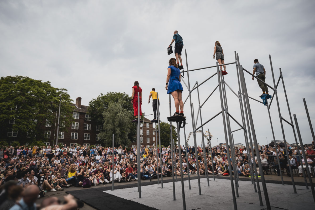 Motionhouse (Reino Unido): Presentará WILD los días 9 y 10 de mayo, a las 20:00 horas, en la explanada del Puerto, un despliegue de danza vertical y acrobacias que explora la desconexión humana en la vida urbana.